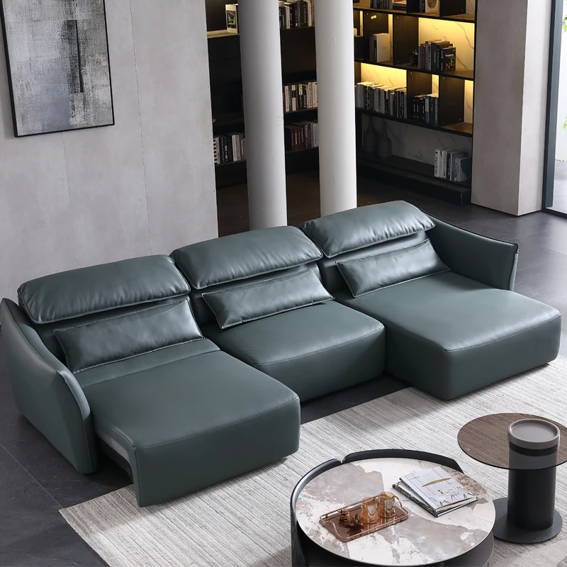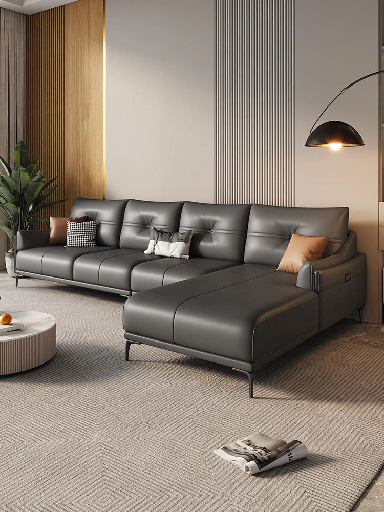 Nordic Genuine Leather Sofa - Modern Minimalist Corner Sofa Bed with Electric Functionality, Made from Top-Grain Cowhide, Perfect for Your Living Room Space
