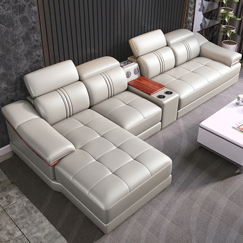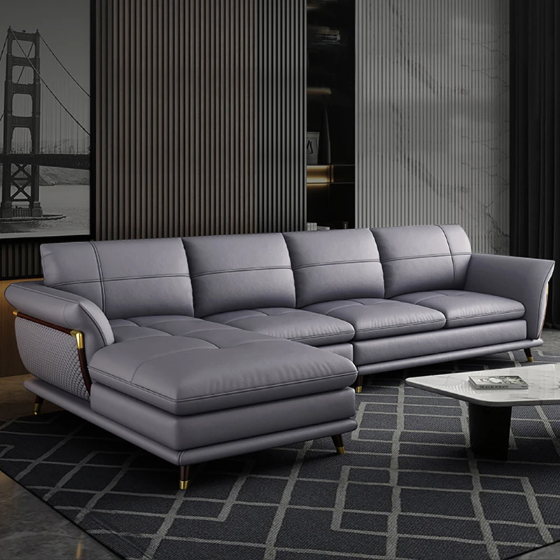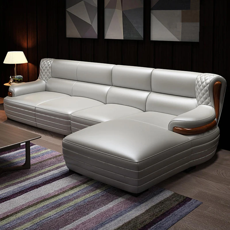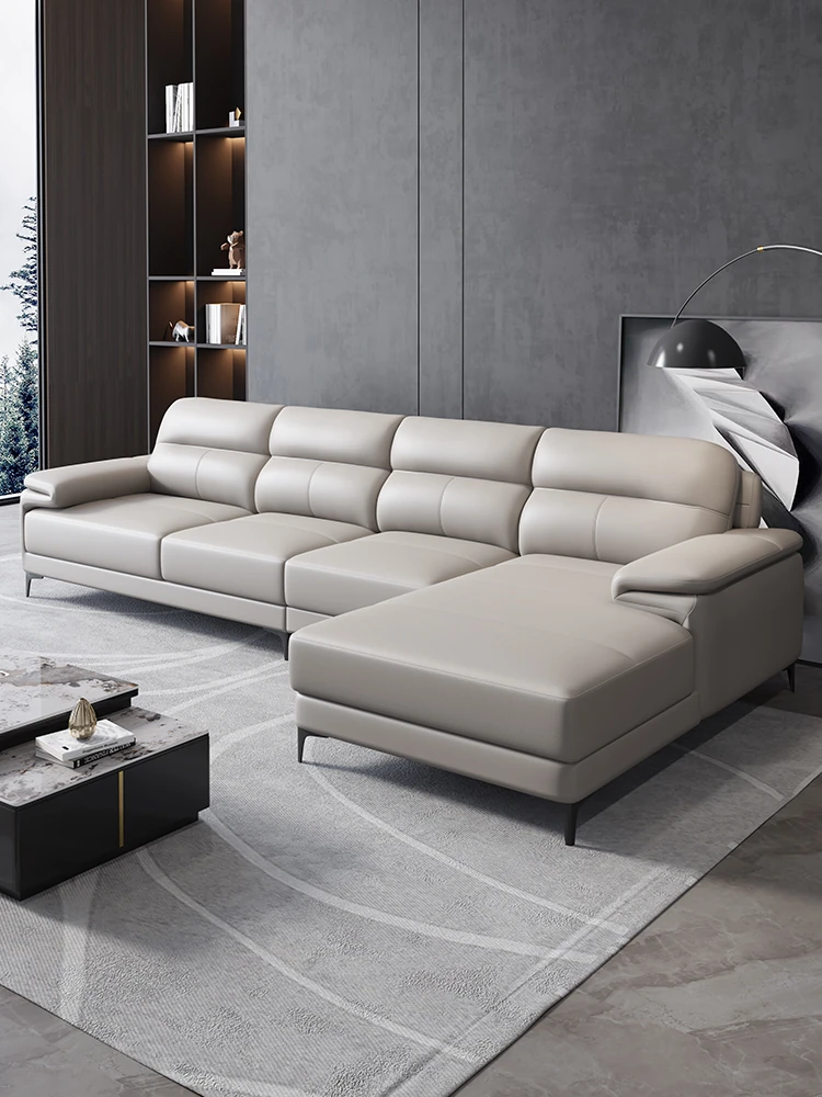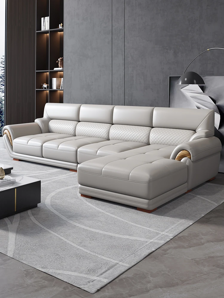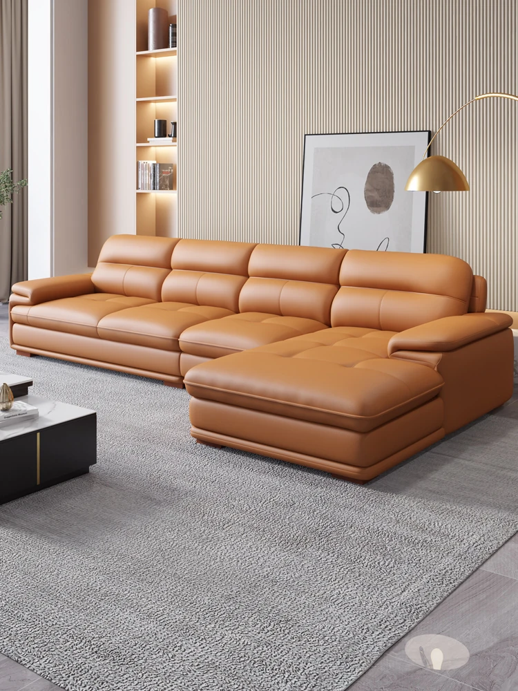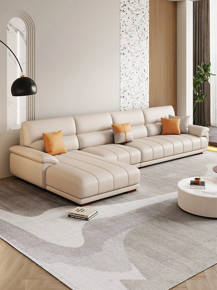 Nordic Leather Sofa Set with Real Cowhide, Modern Minimalist L-Shaped Chaise Lounge for Living Room, Creamy Elegance and Comfort