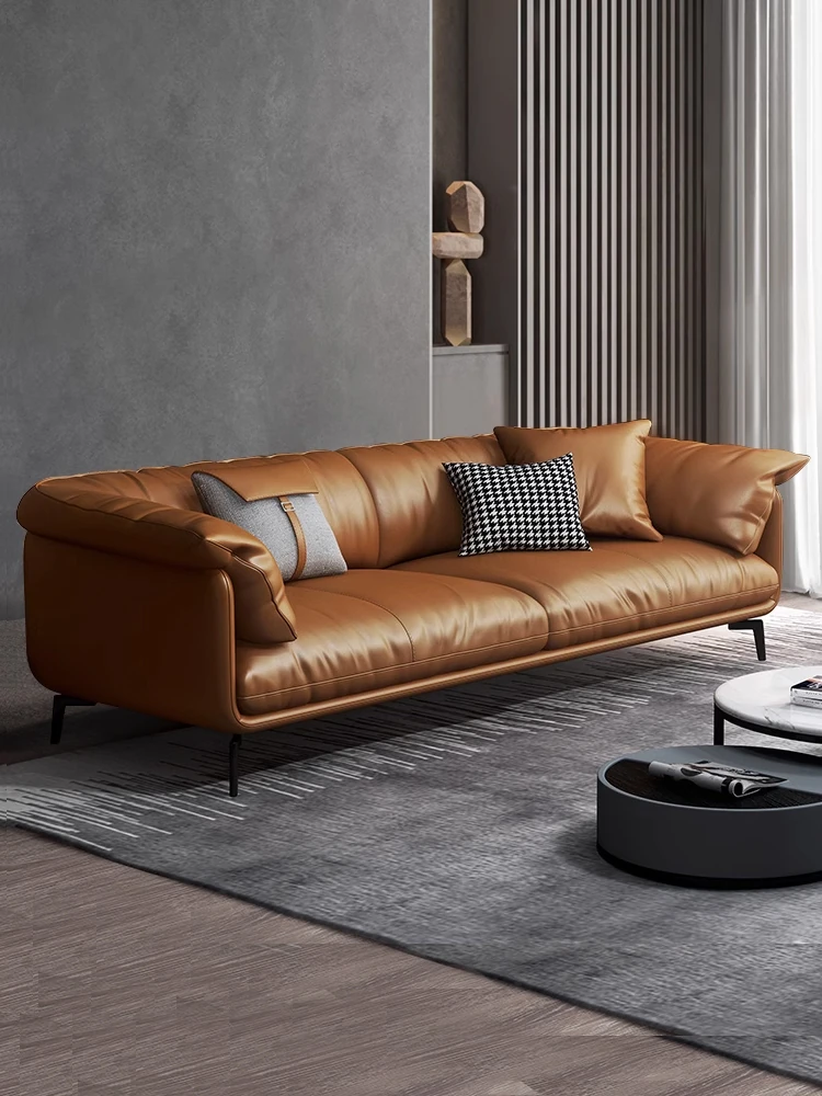 Nordic Genuine Leather Sofa - Modern Minimalist Top-Grain Cowhide Italian Style Living Room Furniture Set - Chic and Elegant Design for Your Home