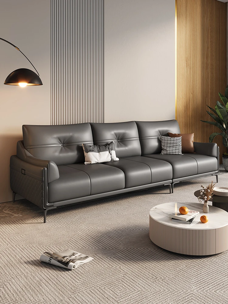 Nordic Genuine Leather Sofa - Minimalist Modern Design for Living Room, Versatile Size for Any Home, Stylish Faux Leather Sofa Set