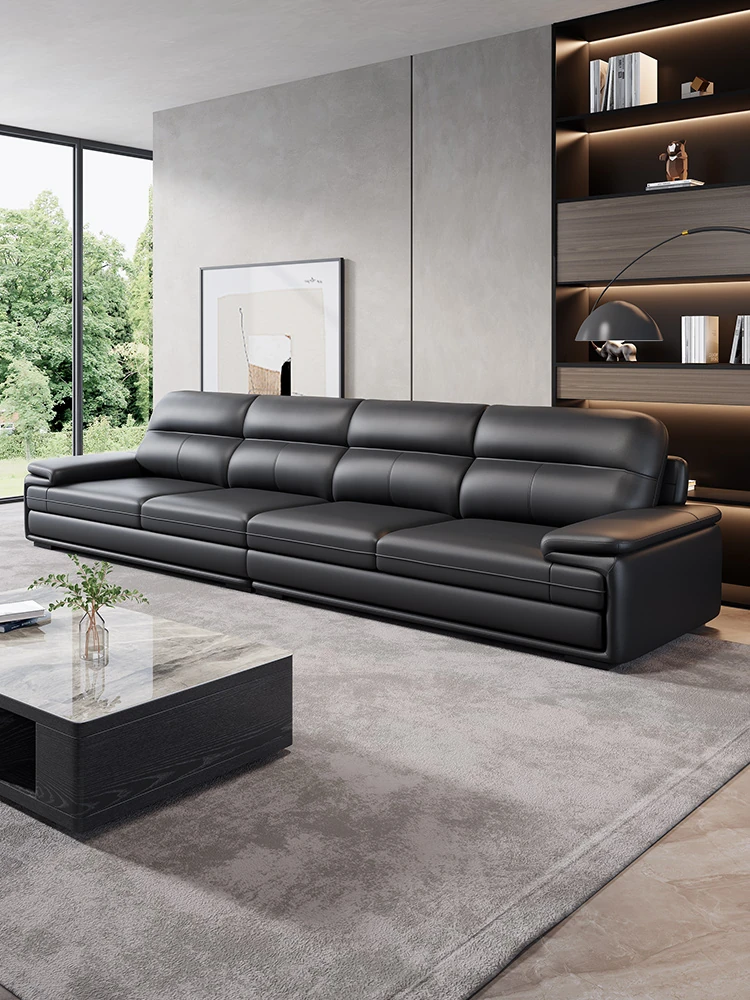 Italian Minimalist Genuine Leather Sofa - Top Grain Cowhide Modern Simple Black Three-Seater for Small Living Spaces