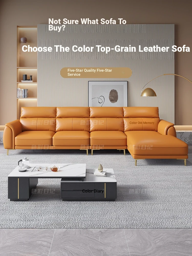 Modern Italian Luxury Genuine Leather Sofa Set - Top-Grain Cowhide in Elegant Orange, Perfect for Any Living Room Size. Transform Your Space with Stylish Comfort!