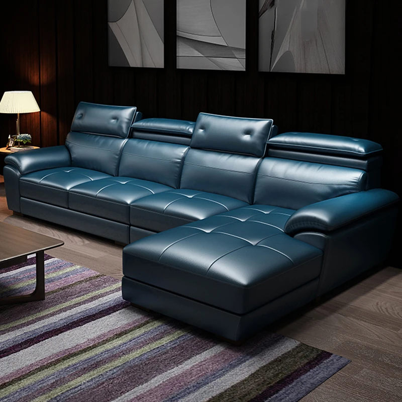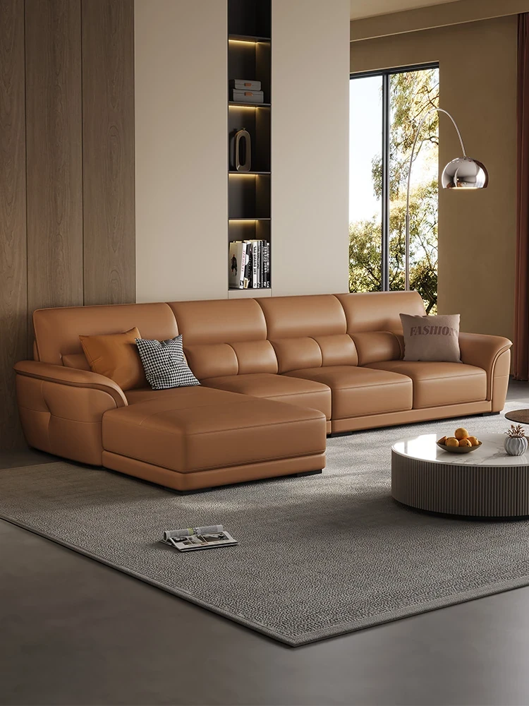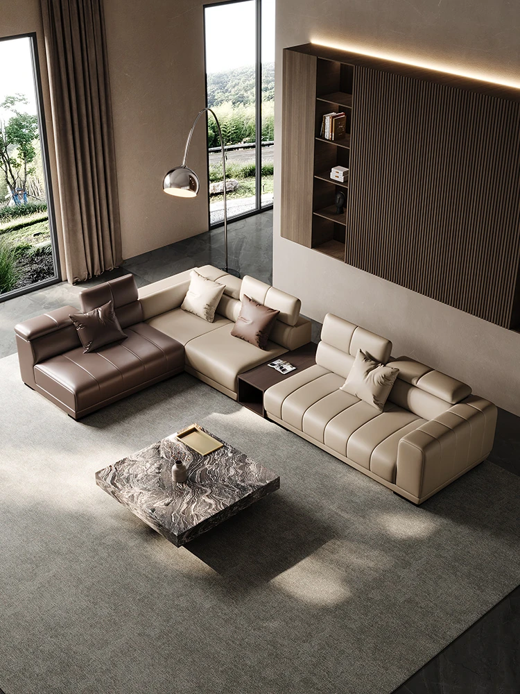 Italian Leather Corner Sofa Set - Premium Top-Grain Cowhide for Spacious Living Rooms and Villas, Minimalist Design, Perfect for Modern Interiors