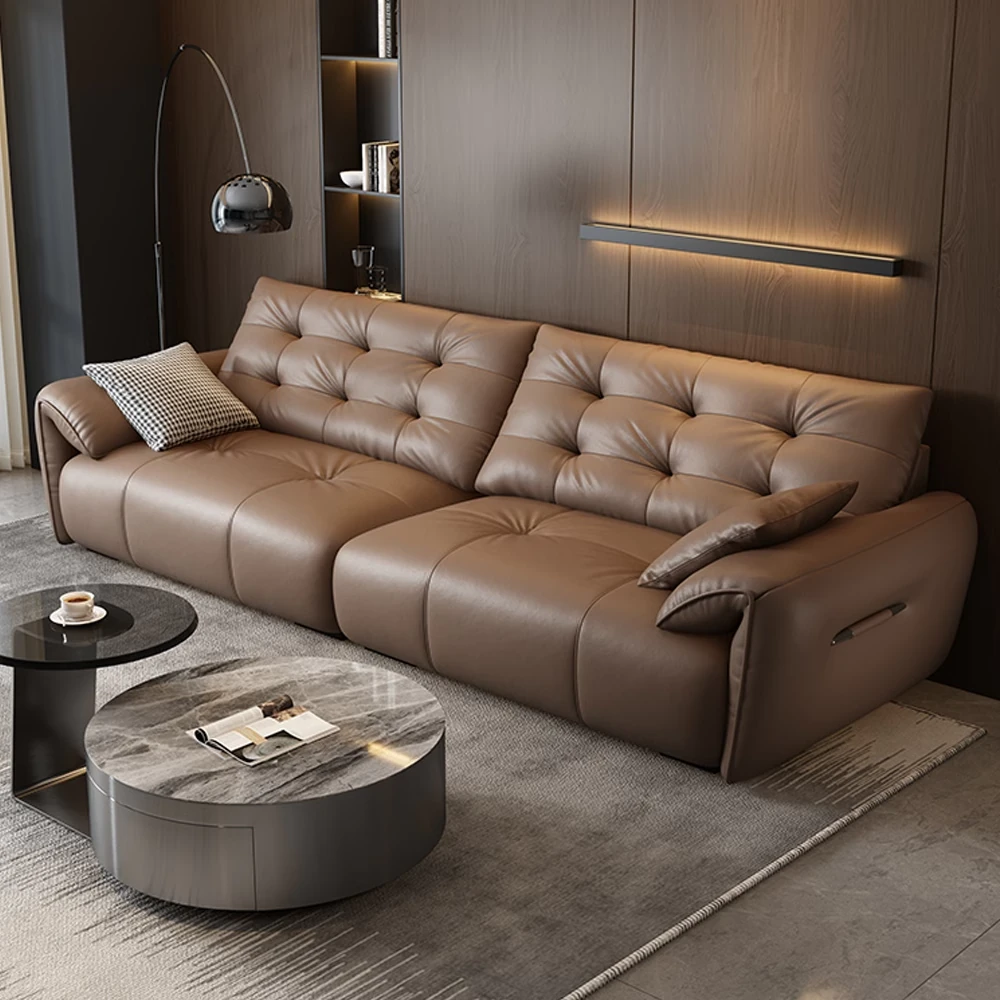 Modern Minimalist Elephant Ear Straight Sofa - Italian Style Genuine Leather Couch for Living Room, Stylish Home Furniture