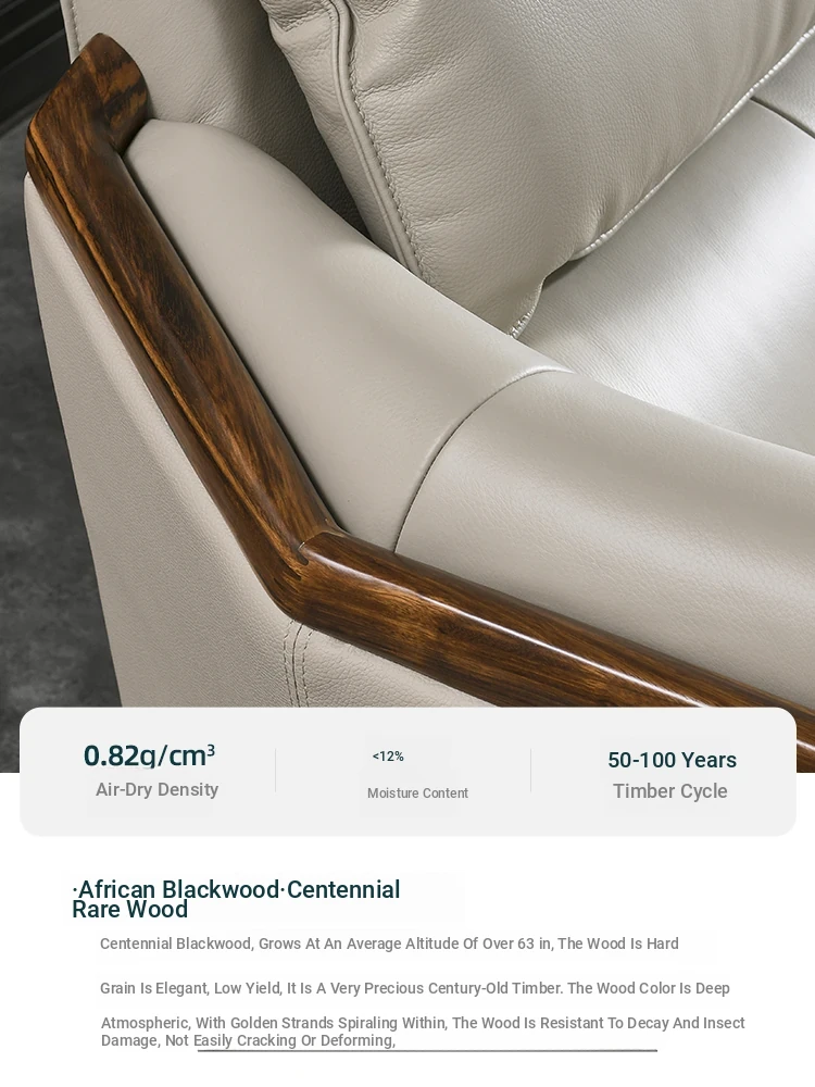 Modern Chinese-Style Genuine Leather Sofa with Black Gold Wood - High-End First Layer Cowhide for Luxurious Living Rooms, Perfect for Various Space Sizes.
