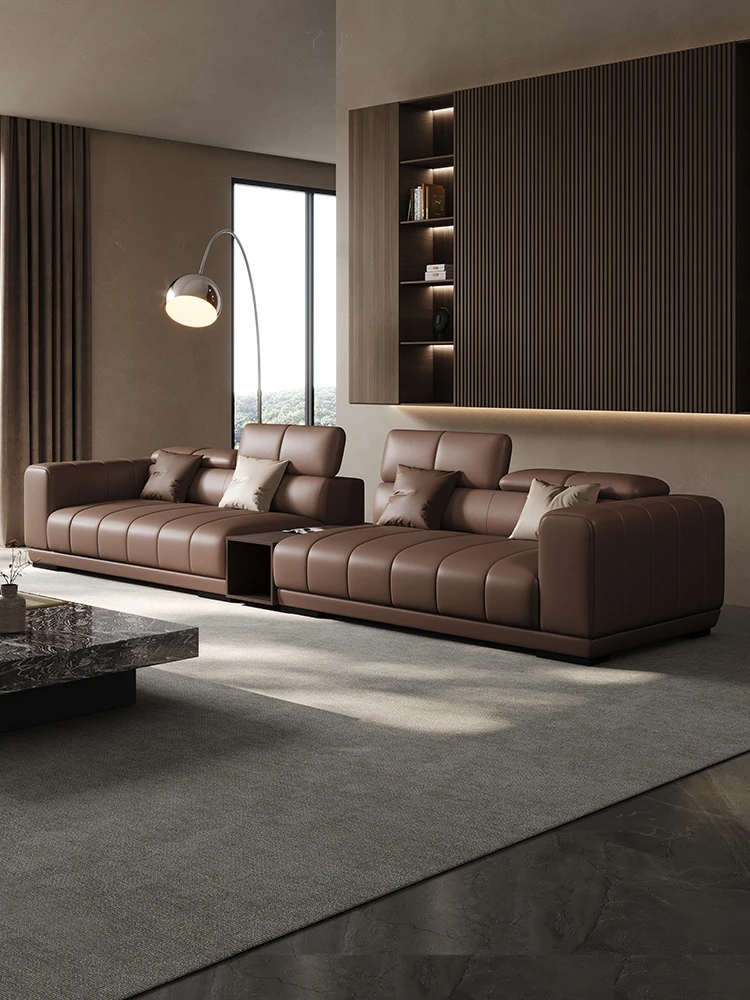 Italian Piano Key Design Genuine Leather Sofa Set - Modern Minimalist 3-4 Seater Living Room Sofa with Top Grain Cowhide for Stylish Comfort and Elegance