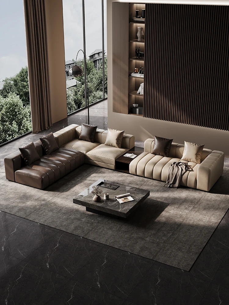 Italian Luxury Genuine Leather Modern Corner Sofa Set with Piano Key Design for Elegant Villas and Spacious Living Rooms