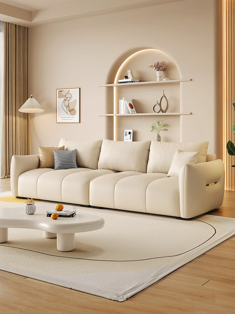 Nordic Cream Fabric Sofa - Modern Italian Minimalist 3-Seater with Piano Key Design for Your Living Room
