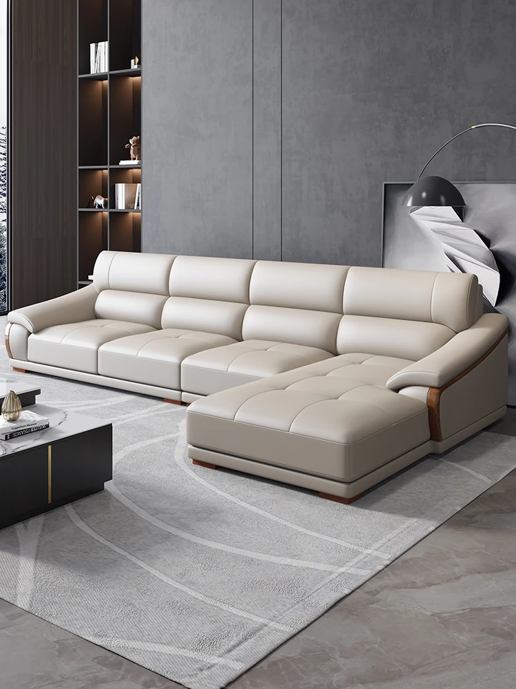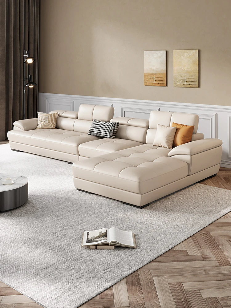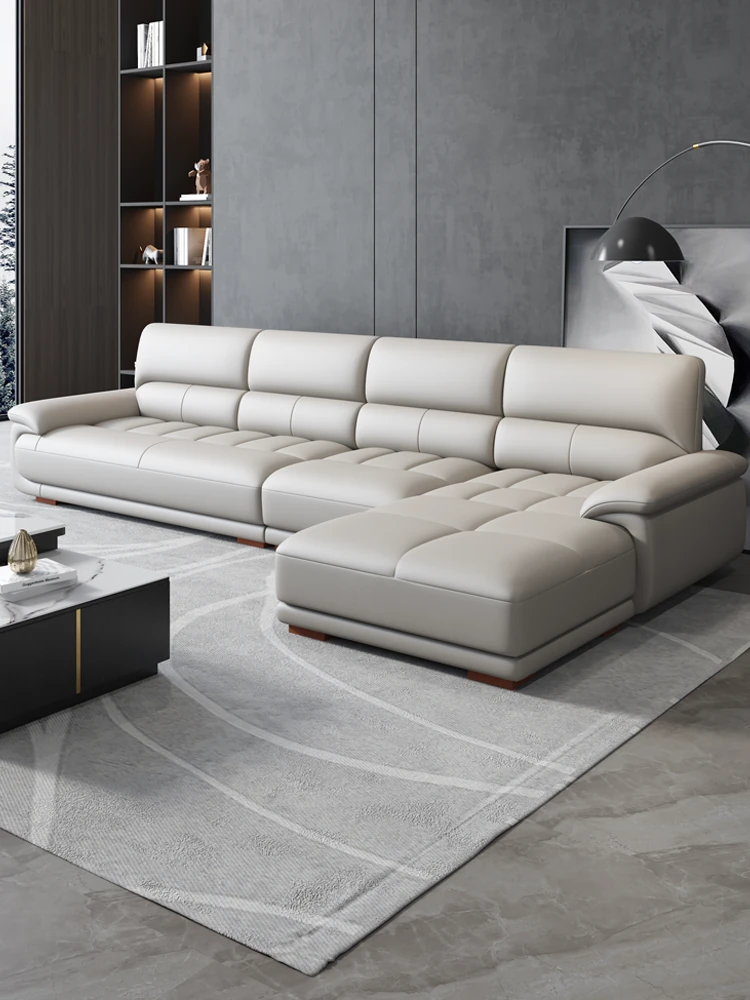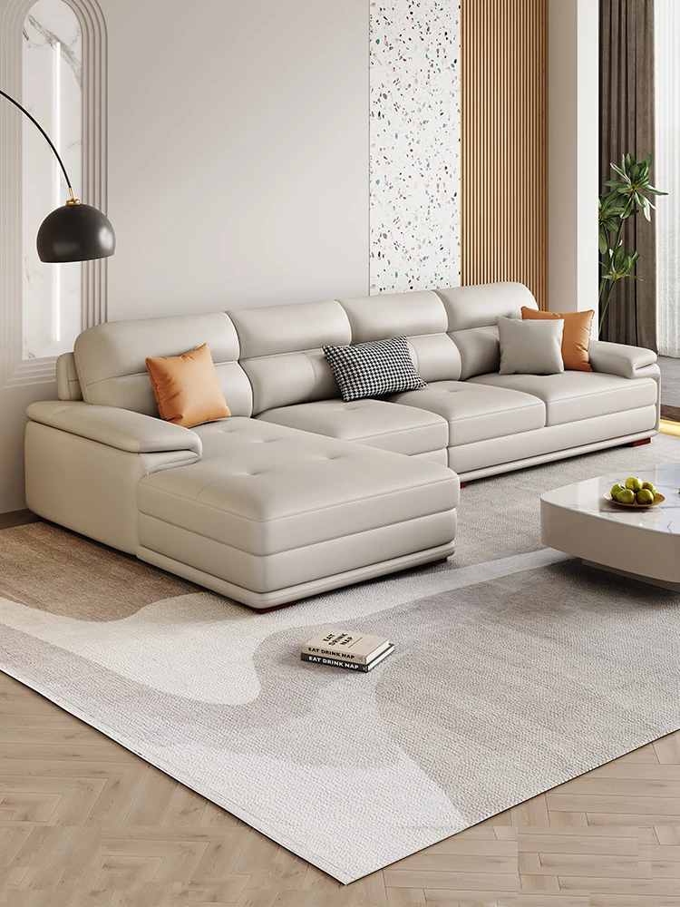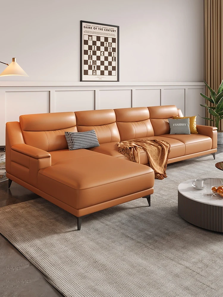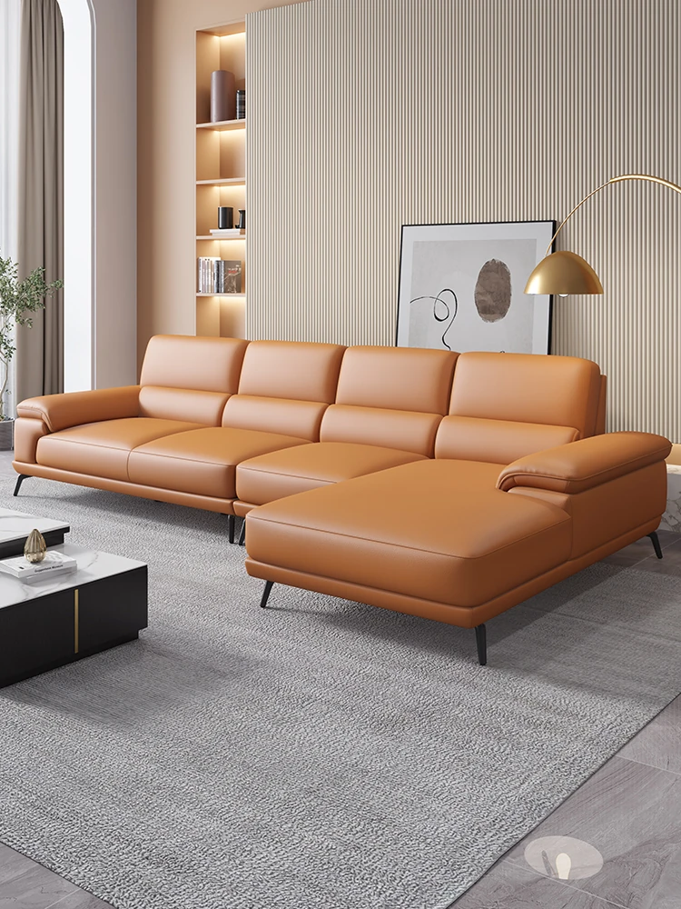Nordic Genuine Leather Sofa - Modern Minimalist Corner Couch with Chaise Lounge, Made from Top-Grade Cowhide for Stylish Living Rooms