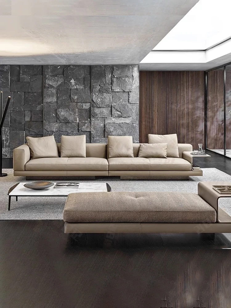 Creative Minimalist Genuine Leather Sofa - Modern Simple Design for Small Living Rooms, Straight-Line Four-Seater, Italian Minimalism