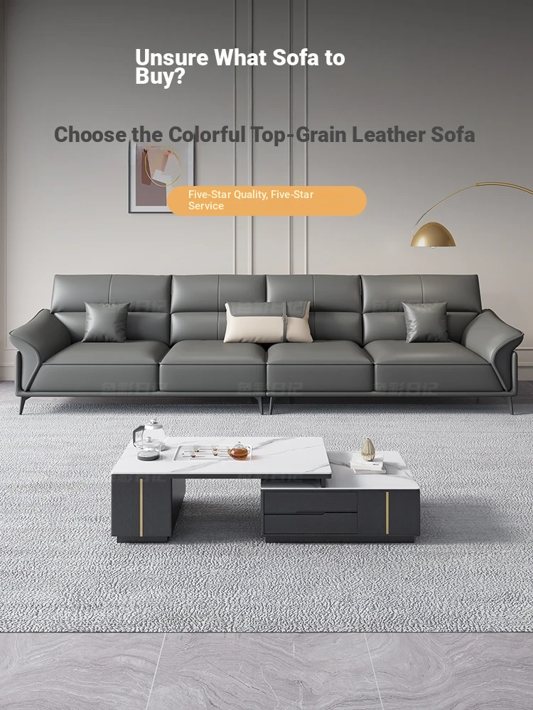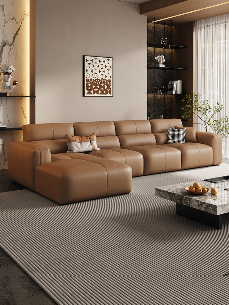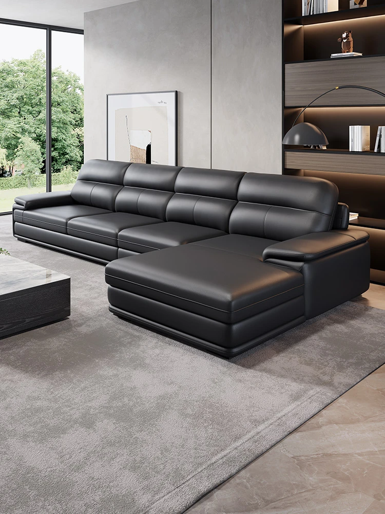 Modern Nordic Genuine Leather Sofa - Top Grain Cowhide, Minimalist Design, Perfect for Any Living Room Size with Chaise Lounge, 2024 New Arrival