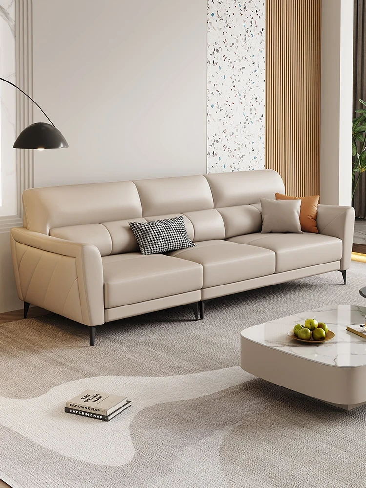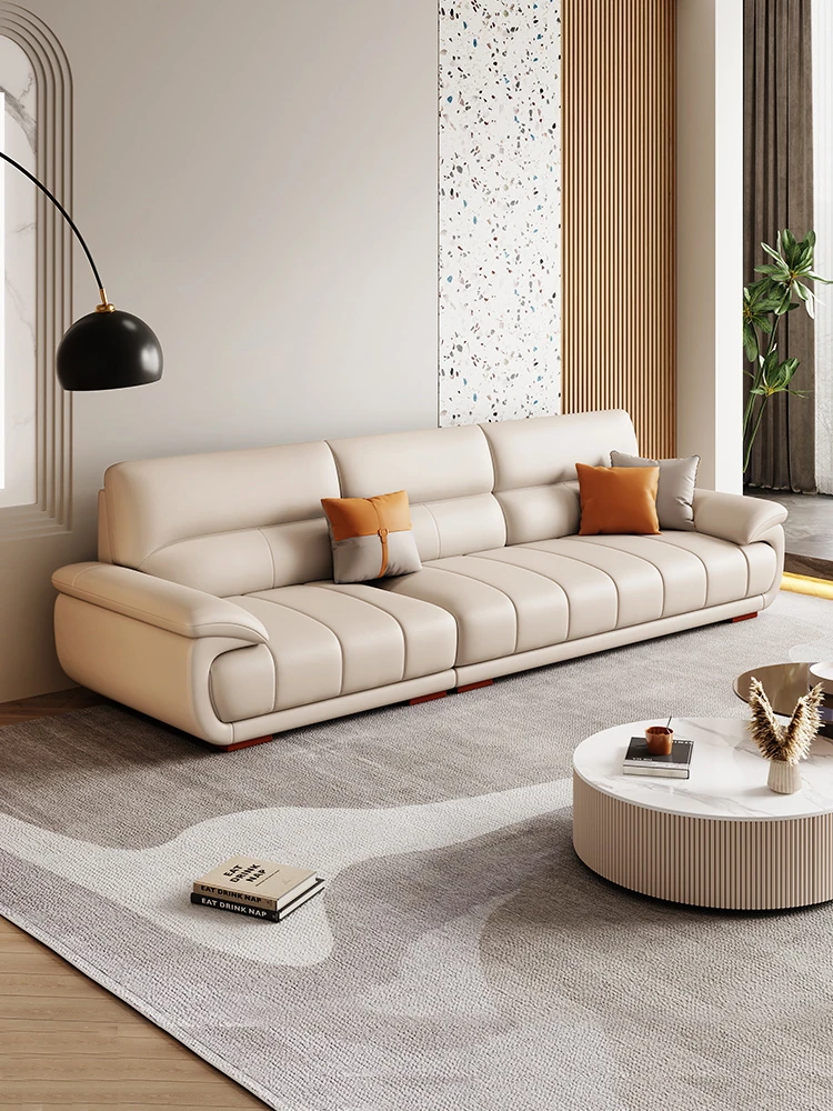 Modern Minimalist Italian Leather Sofa Set - Top Grain Cowhide, Luxurious 3-Seater with Straight Design for Contemporary Living Rooms