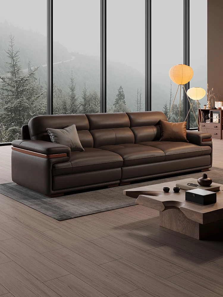 Nordic Genuine Leather Sofa – Premium Top Grain Leather, Modern Minimalist Design, Perfect for Spacious Living Rooms, Stylish 3-Seat Corner Sectional Sofa Set