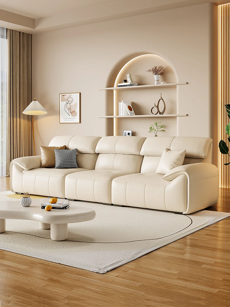 Nordic Cream Leather Sofa - Genuine Top Grain Italian Modern Minimalist 3-Seater for Living Room, Stylish and Comfortable Cube Design