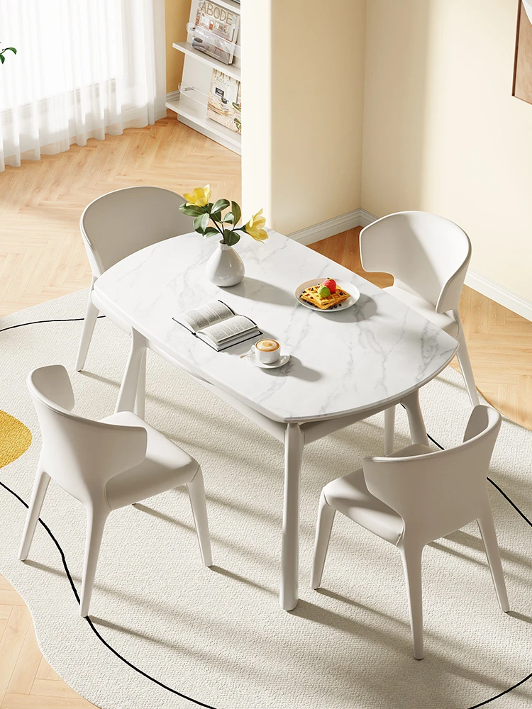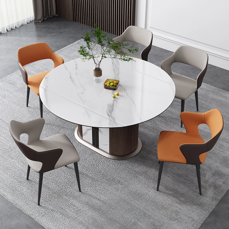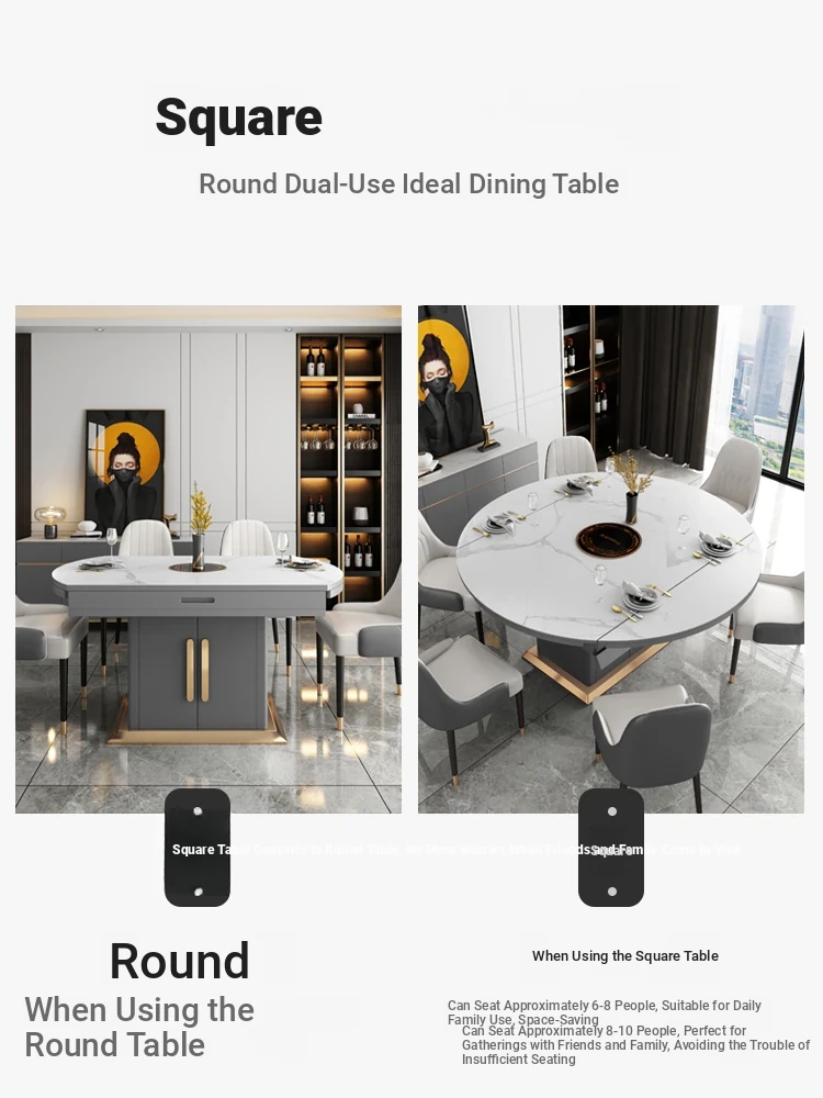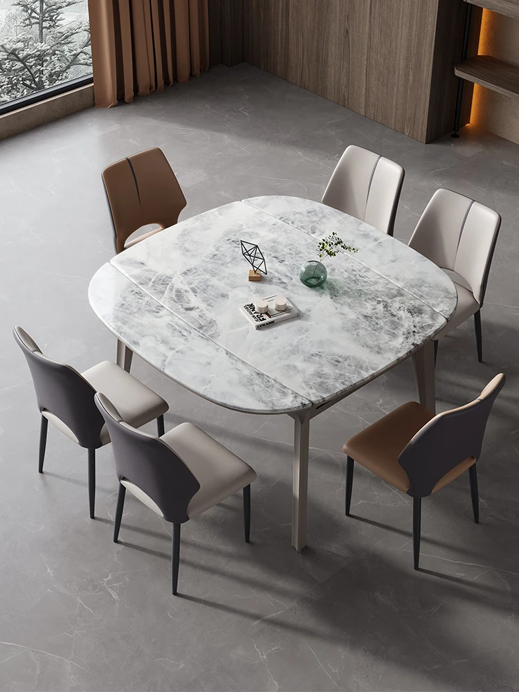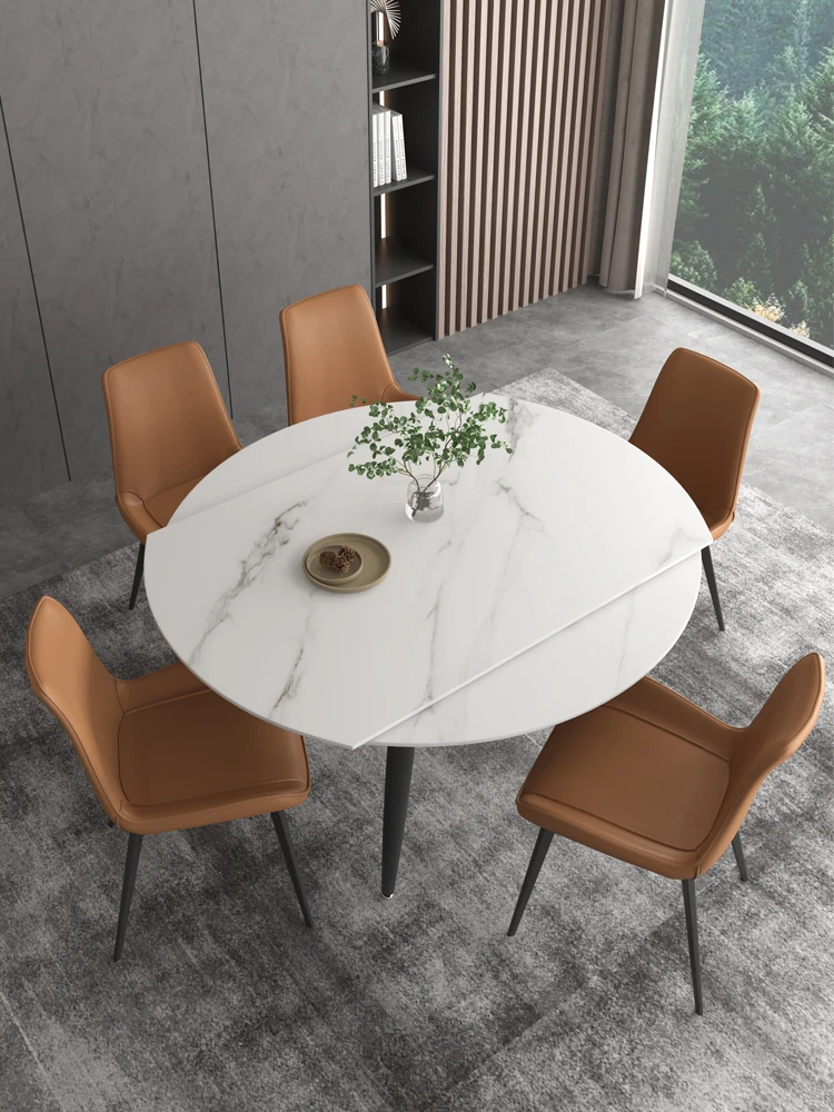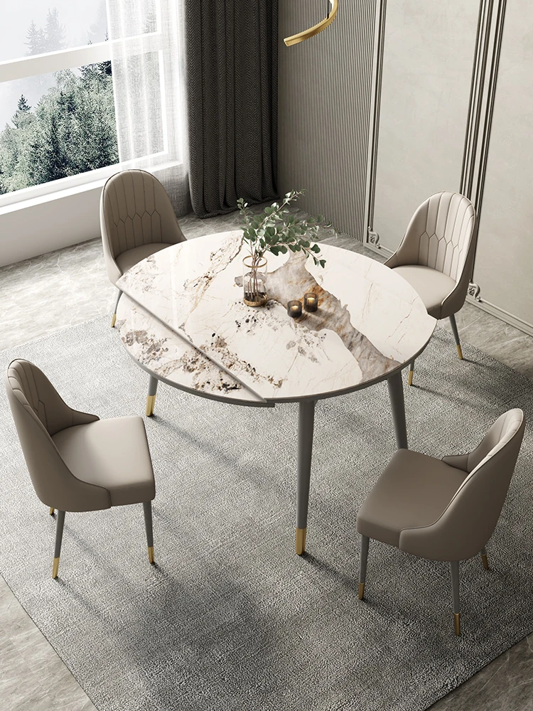Modern Lightweight Luxury Rock Plate Dining Table Set for Small Spaces - Expandable and Foldable Round Table with Induction Cooktop for Home Use