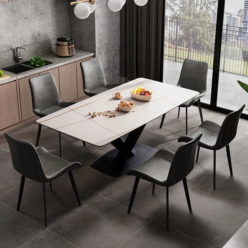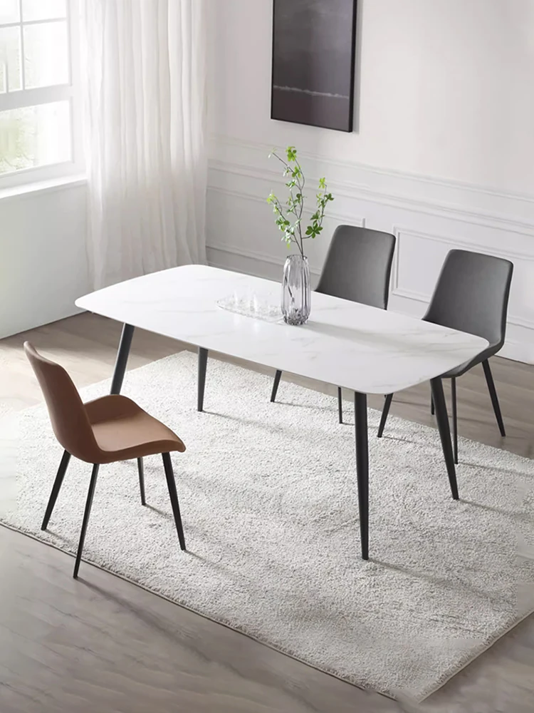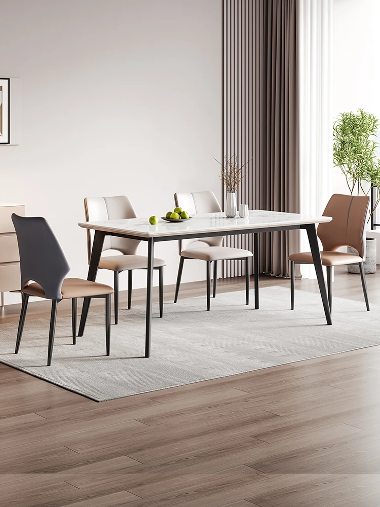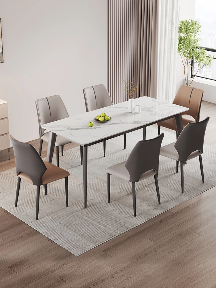 Modern Minimalist Nordic Italian Luxury Rock Plate Dining Table and Chair Set – Sleek Rectangular Design for Small Homes, Durable Stainless Steel Construction