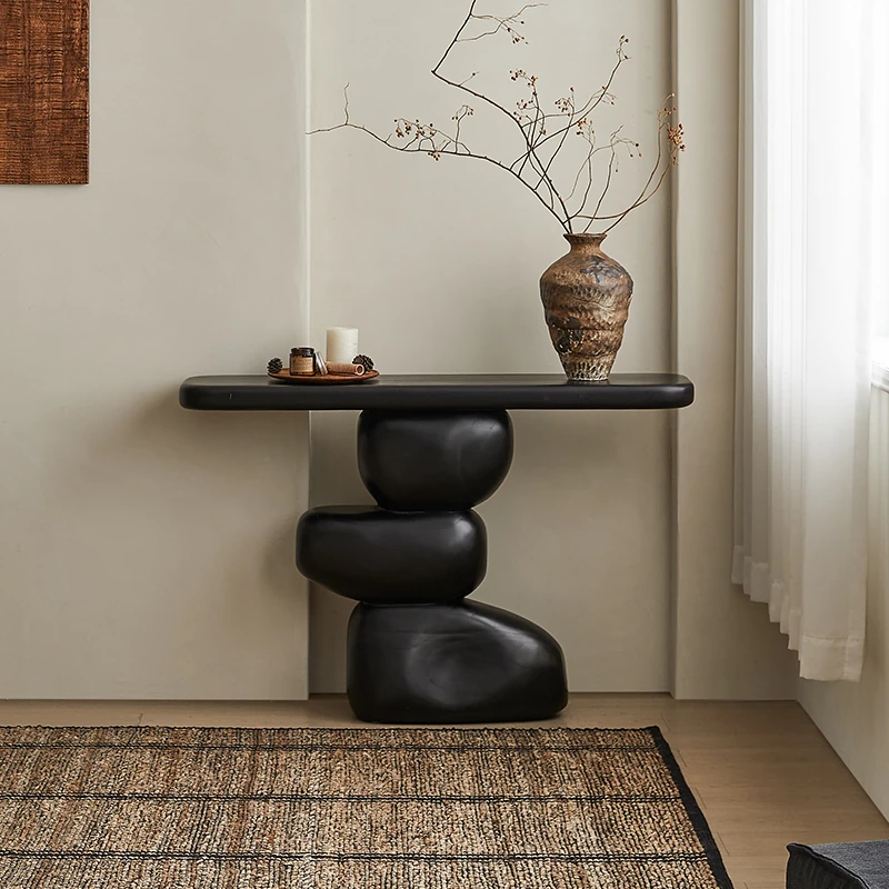 Rustic Solid Wood Entryway Table in Charred Black - Wabi-Sabi Style Corridor Decor for Home Stays, Vintage Art Entry Console for Your Hallway