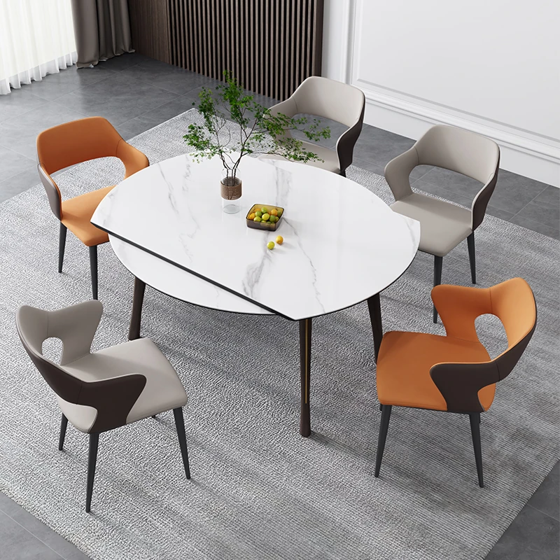 Modern Italian Minimalist Glossy Rock Plate Dining Table and Chair Set - Versatile Expandable Design for Round or Square Dining, Perfect for Home Use, Crafted from Solid Wood