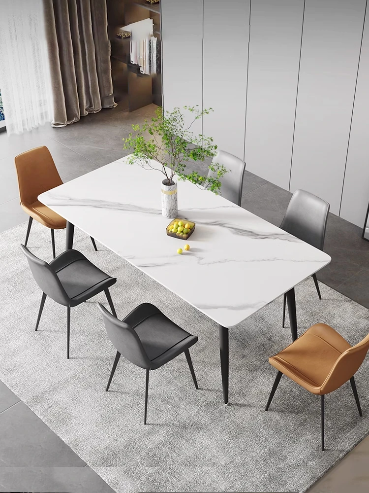 Stylish Minimalist Italian Rectangular Dining Table Set for Small Spaces - Modern Nordic Marble Table with Chairs for Home Use