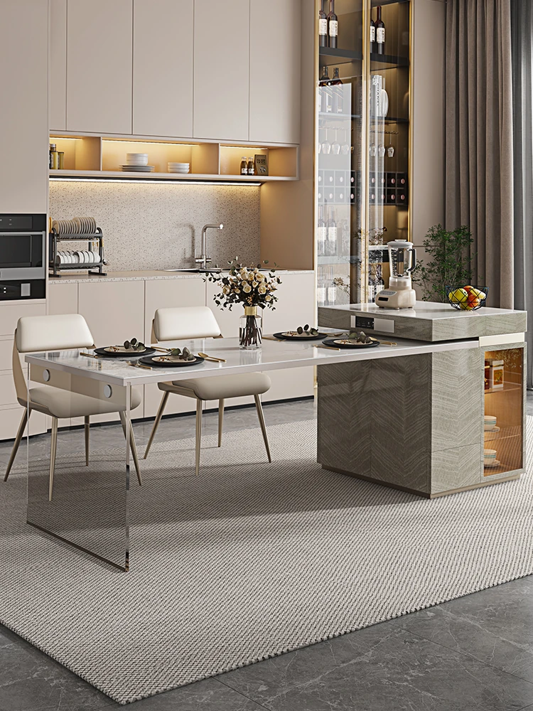 Elegant Open Kitchen Island Dining Table - Versatile and Extendable Rectangular Dining Table with Rock Plate Top for Home Use, Perfect for Stylish Bar Areas