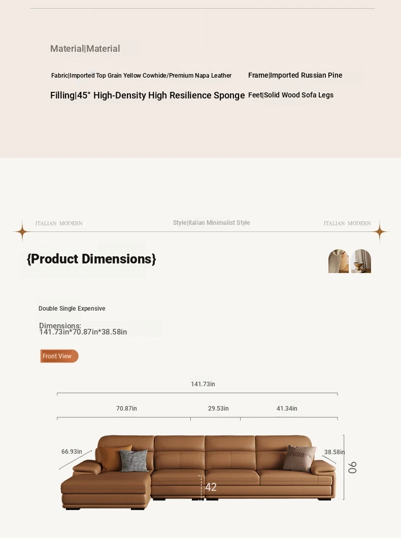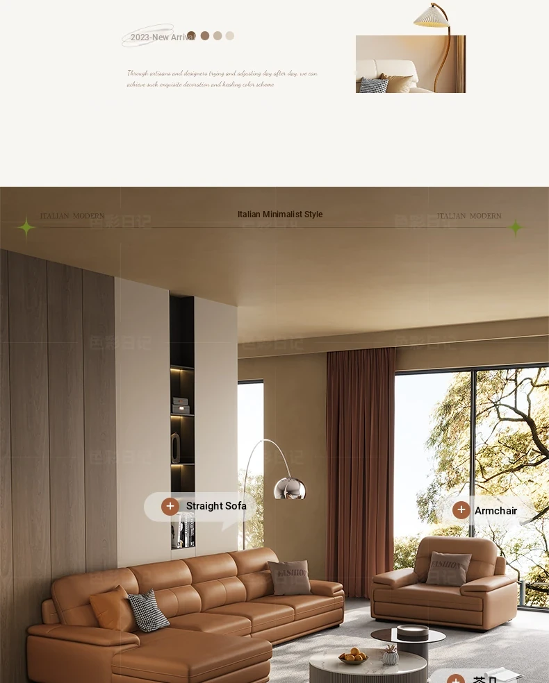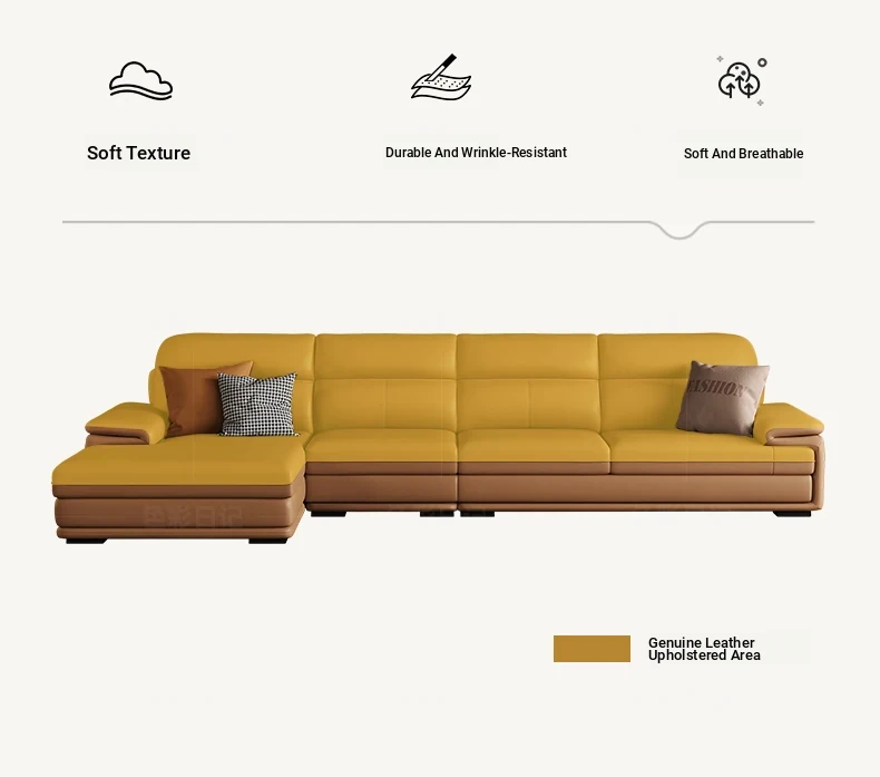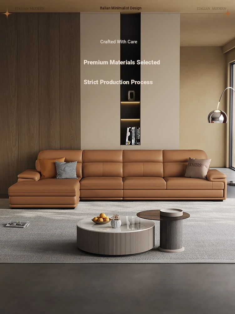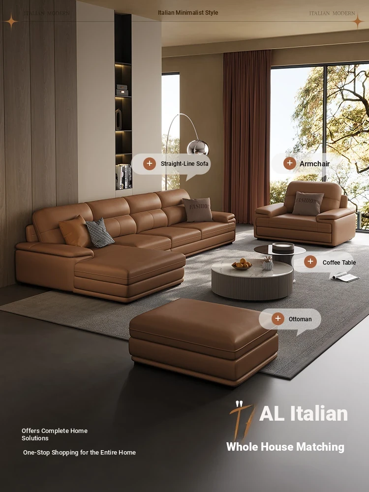 Nordic Genuine Leather Sofa - Top-Quality Cowhide, Stylish Minimalist Design for All Room Sizes, Modern Living Room Set, New Arrival 2024