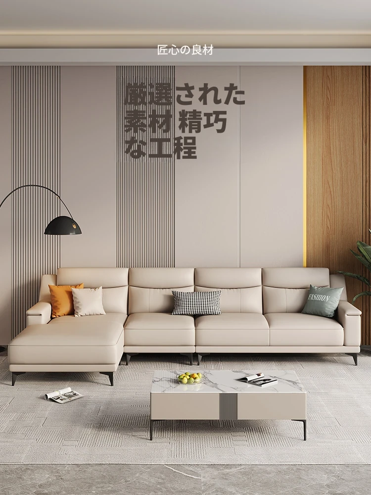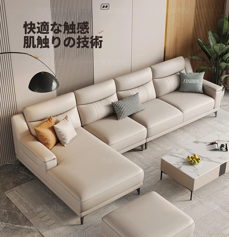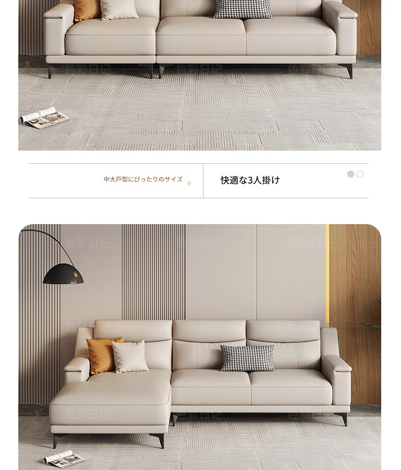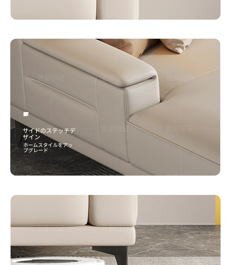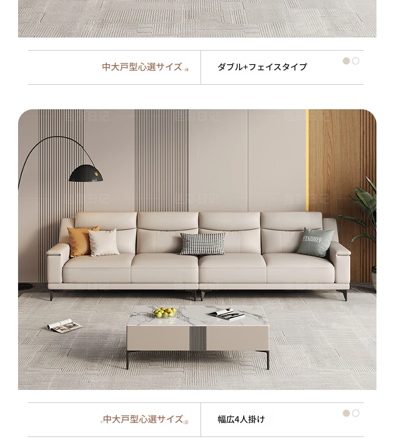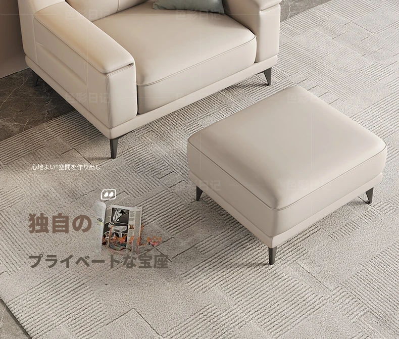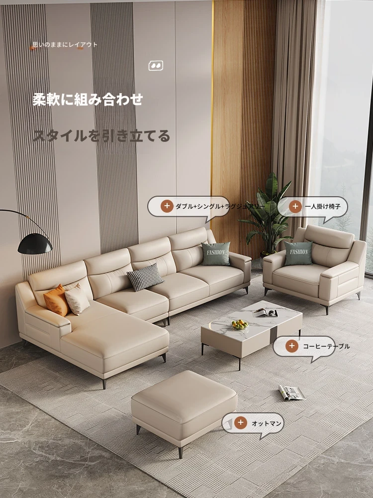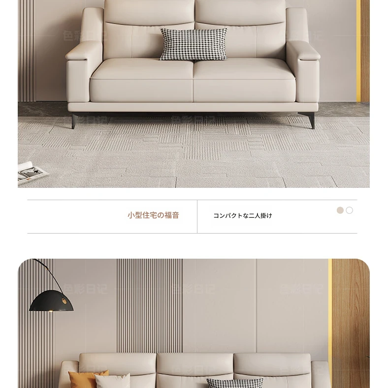 イタリアンミニマリズムの本革ソファ|高級牛革使用|モダンでシンプルなデザイン|大中小さまざまなリビングに最適|クリーミーカラーのスタイリッシュなソファセットで、居心地の良い空間を演出!