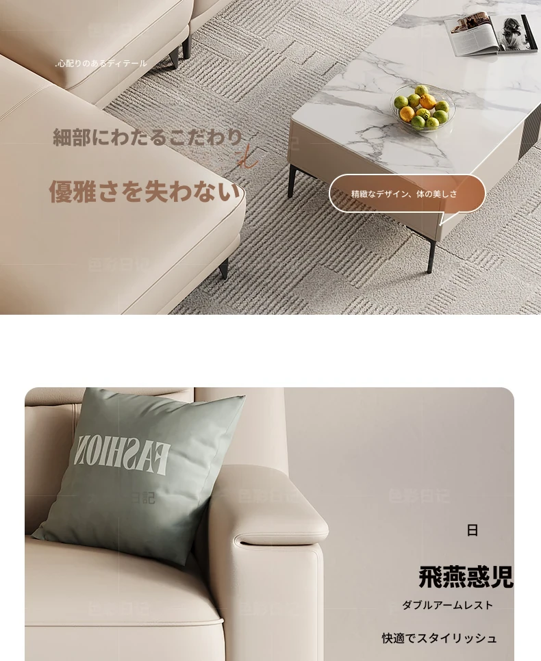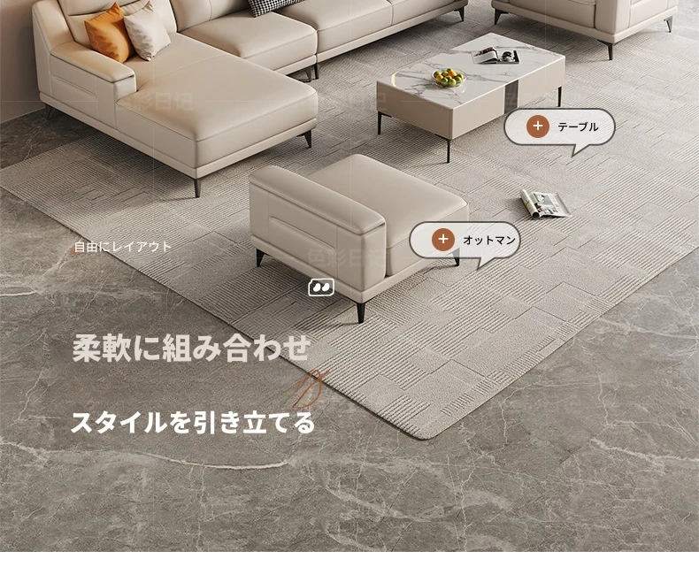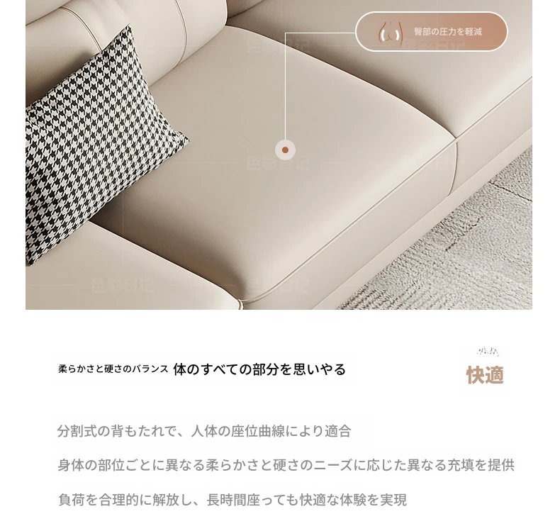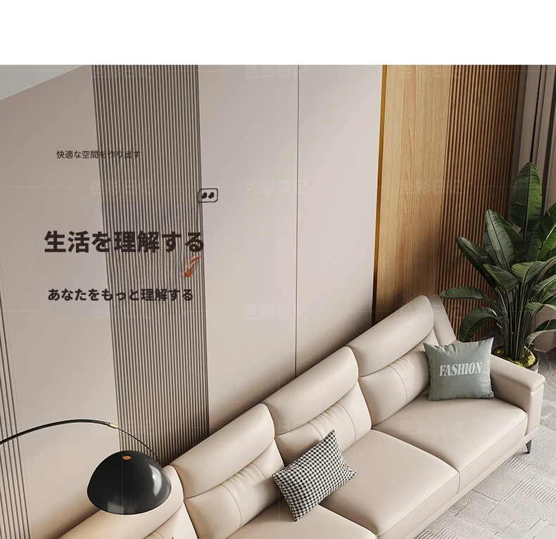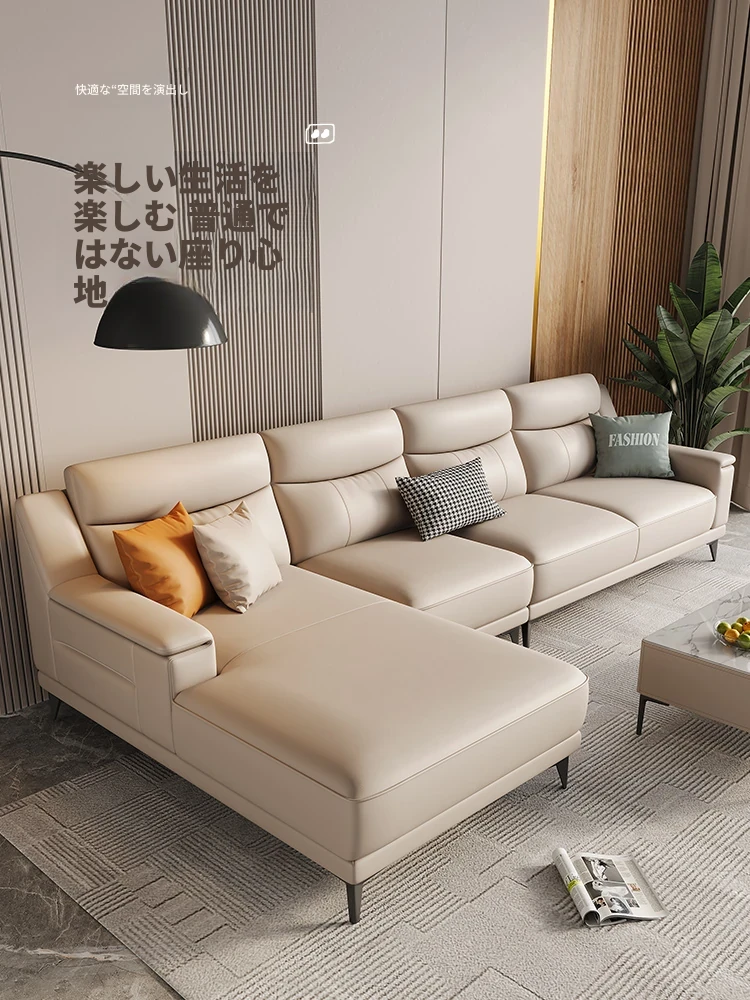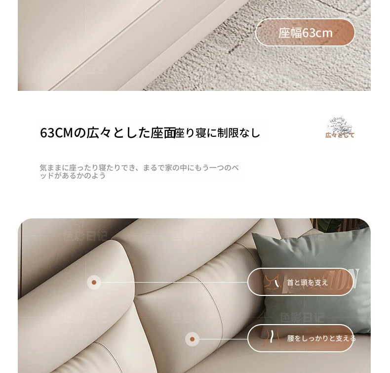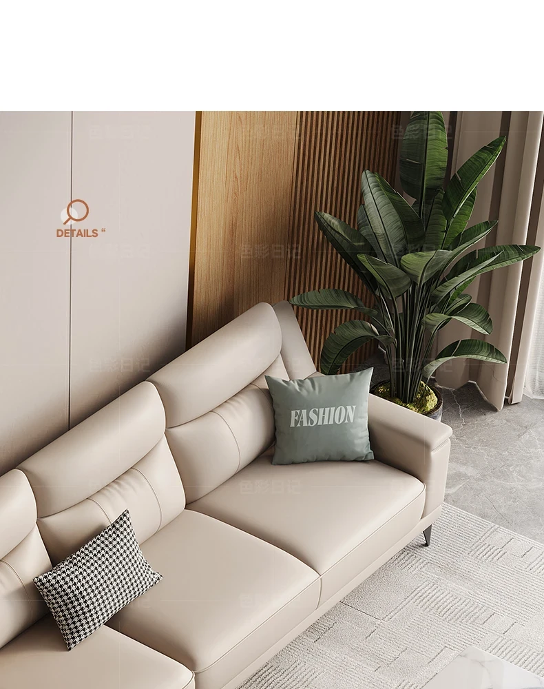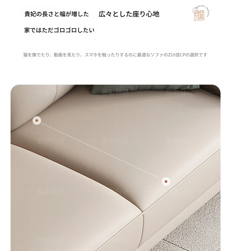 イタリアンミニマリズムの本革ソファ|高級牛革使用|モダンでシンプルなデザイン|大中小さまざまなリビングに最適|クリーミーカラーのスタイリッシュなソファセットで、居心地の良い空間を演出!