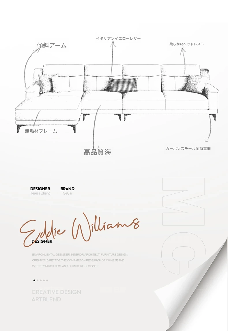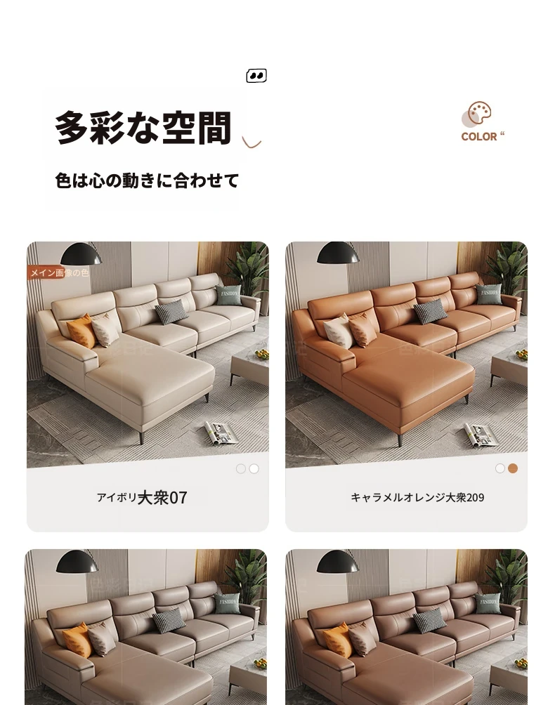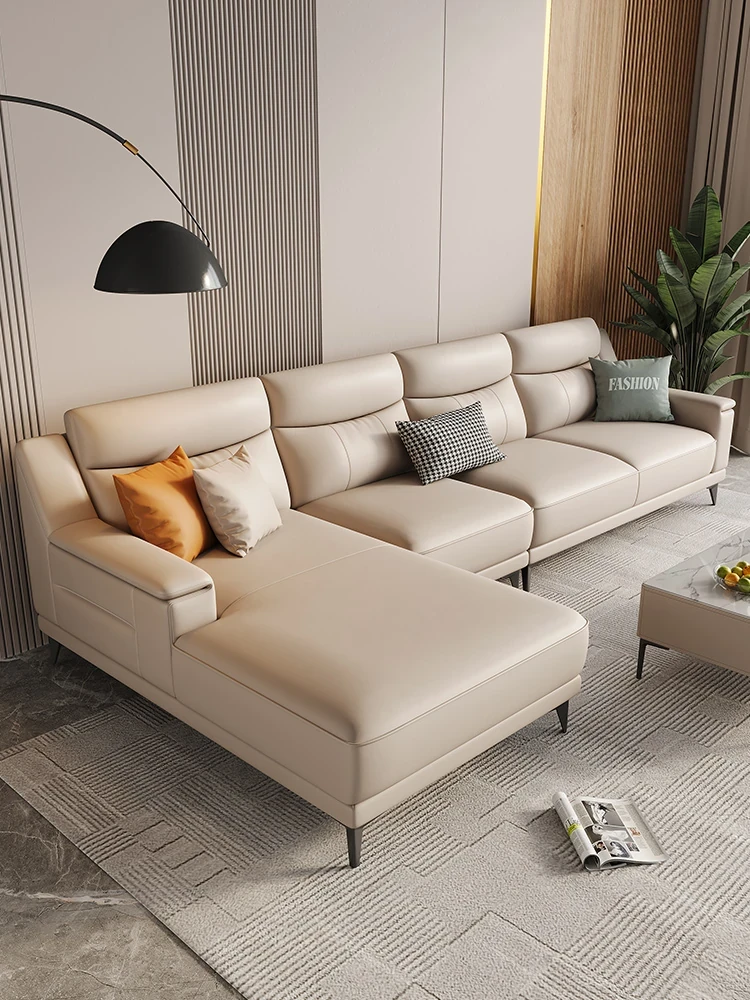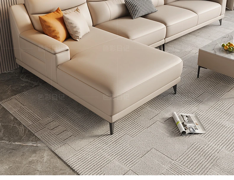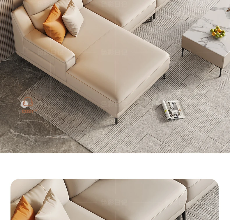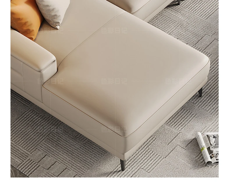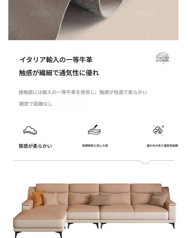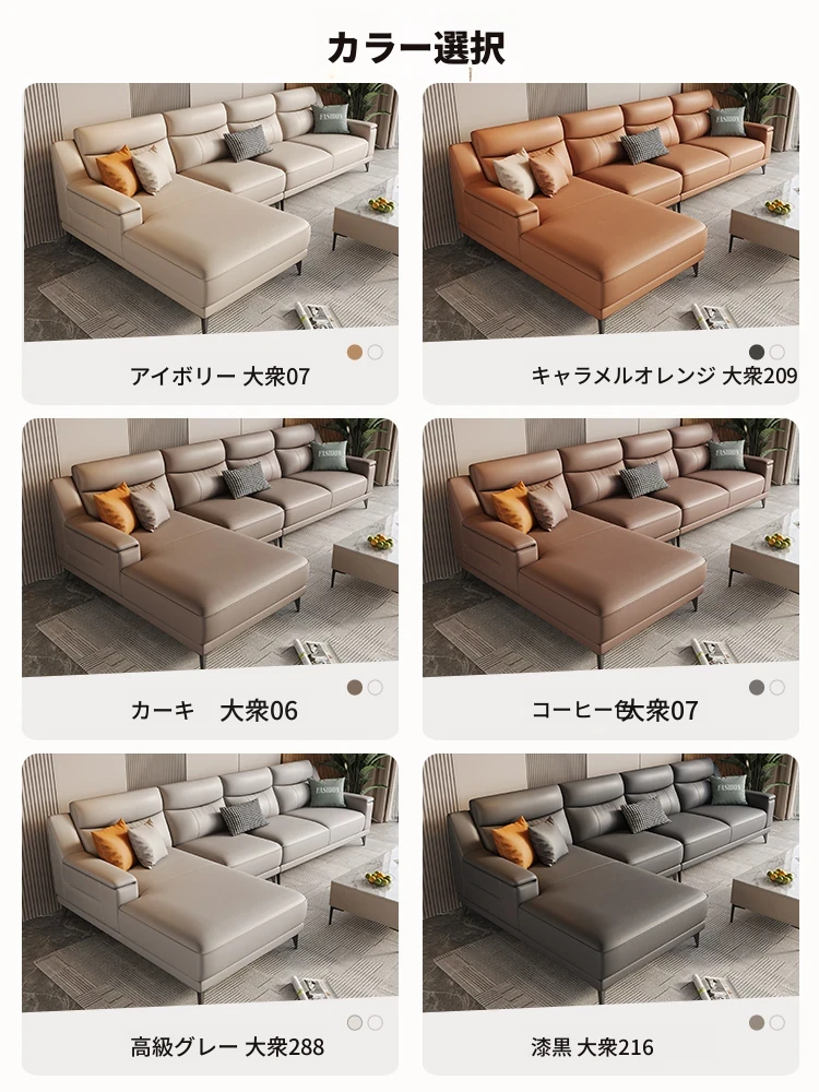 イタリアンミニマリズムの本革ソファ|高級牛革使用|モダンでシンプルなデザイン|大中小さまざまなリビングに最適|クリーミーカラーのスタイリッシュなソファセットで、居心地の良い空間を演出!