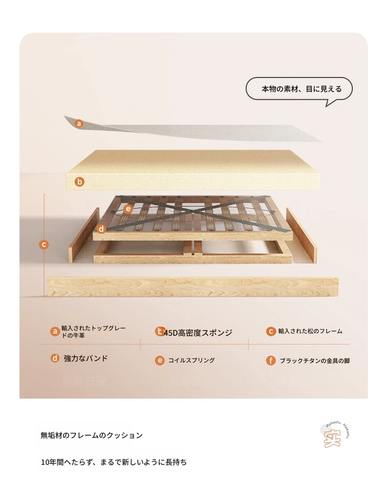 ダブル+シングル+高級+オットマン【輸入黄牛皮】