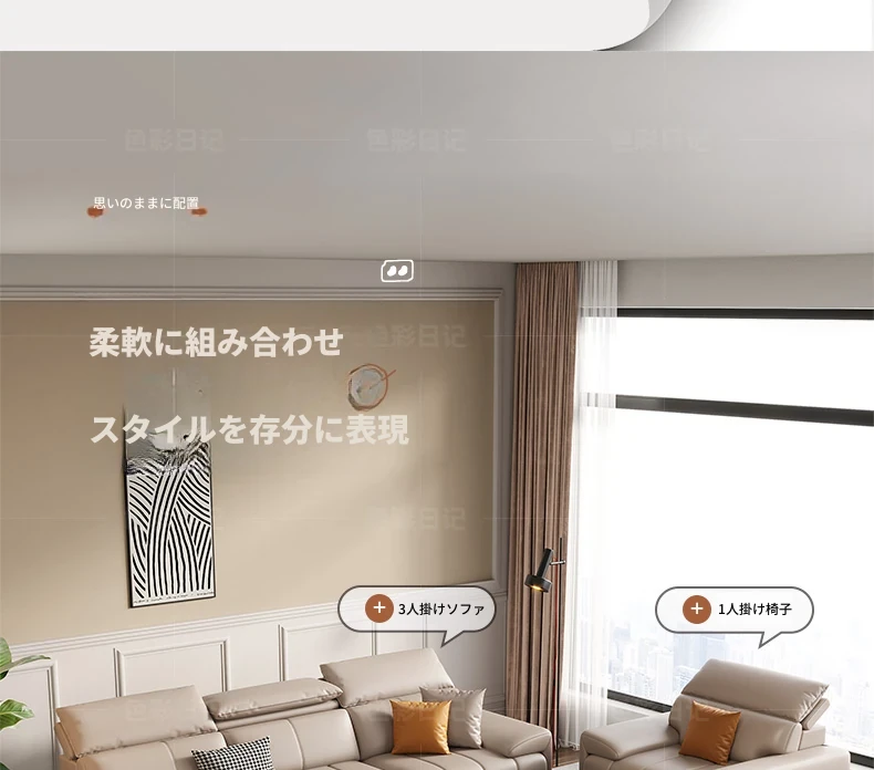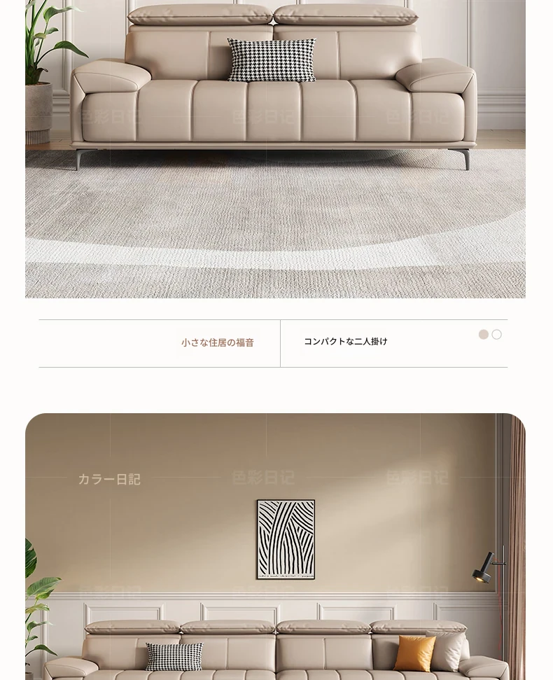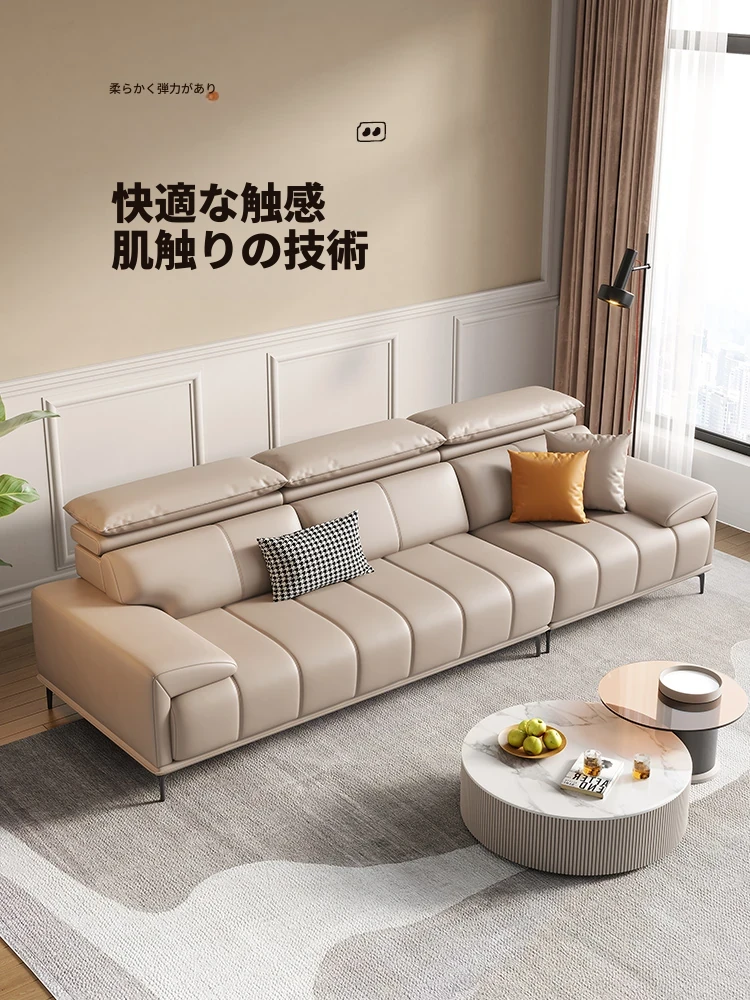 イタリアンミニマルデザイン本革ソファ|高級牛革使用のピアノキーソファ|小さなリビングに最適なスリムな3人掛けソファで、スタイリッシュな空間を演出!