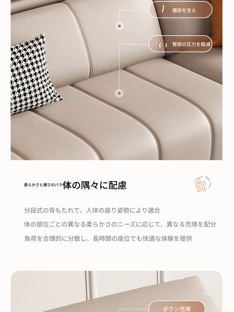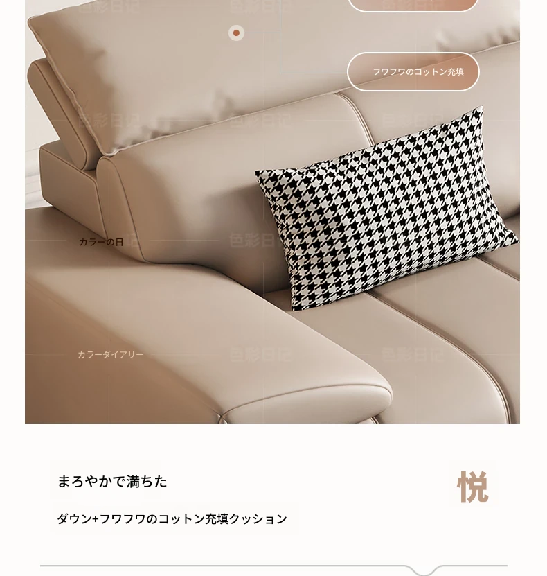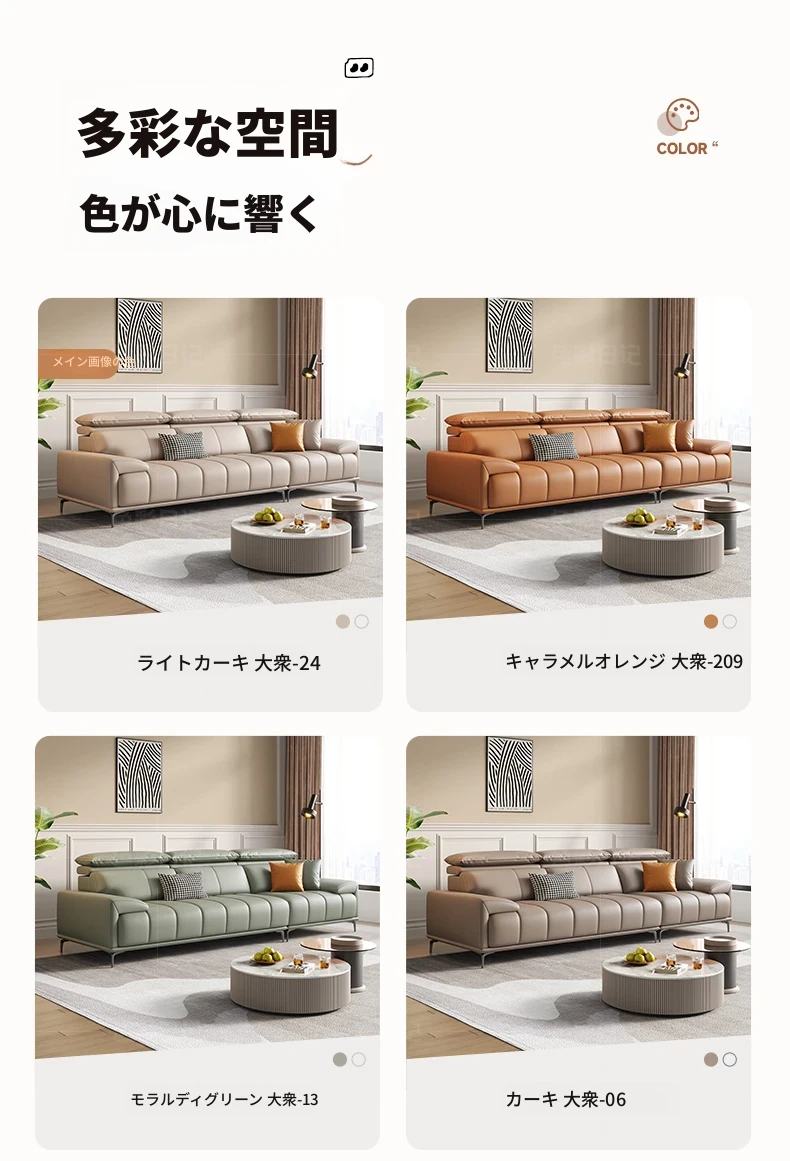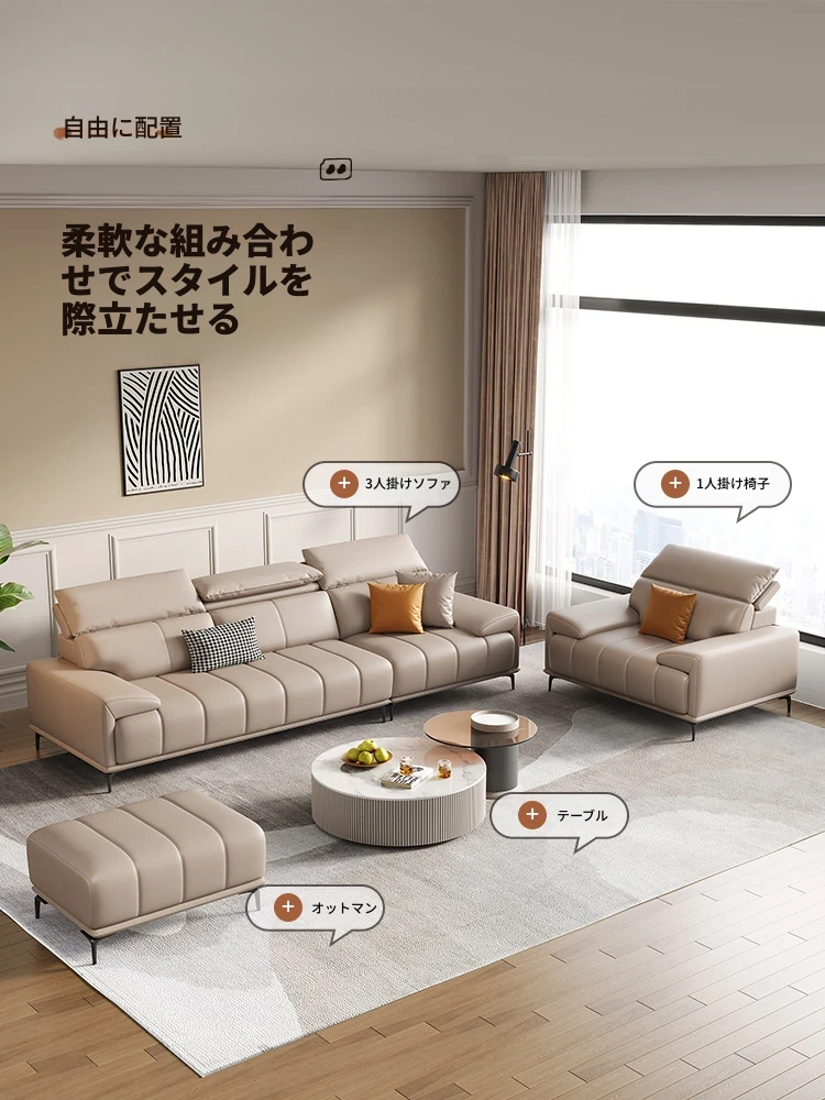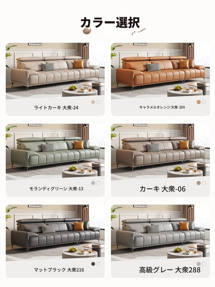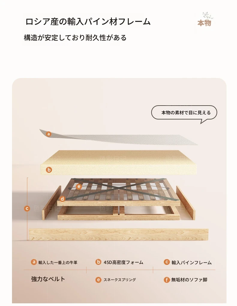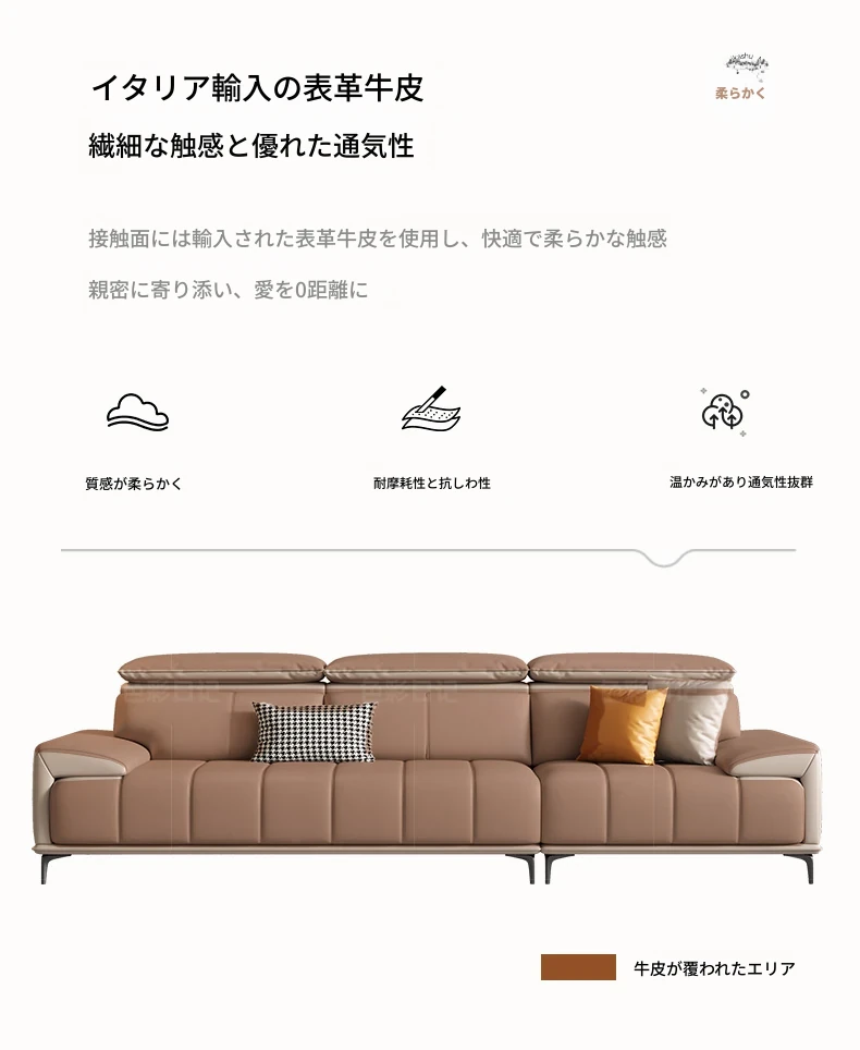 【輸入 牛革】3人用(アップグレード羽毛クッション)