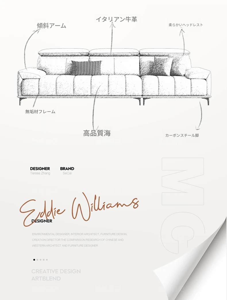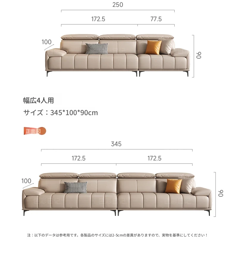 【輸入 牛革】3.2m 3人用(アップグレード羽毛クッション)