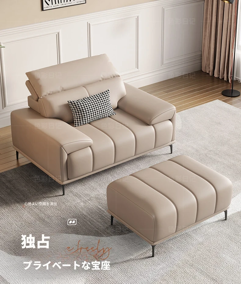 【輸入 牛革】1人用+オットマン(アップグレード羽毛クッション)