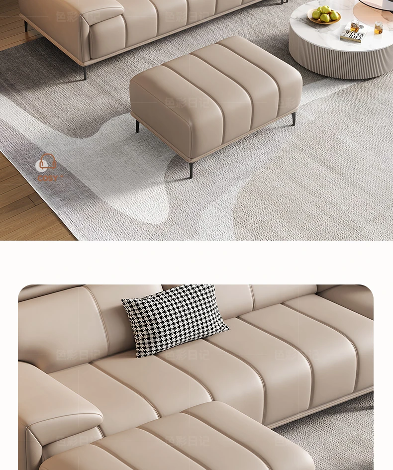 【輸入 牛革】3人用+オットマン(アップグレード羽毛クッション)