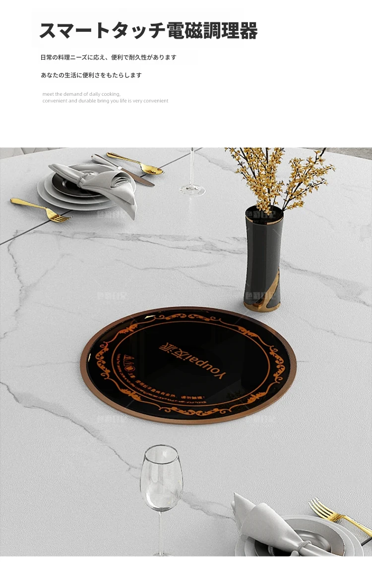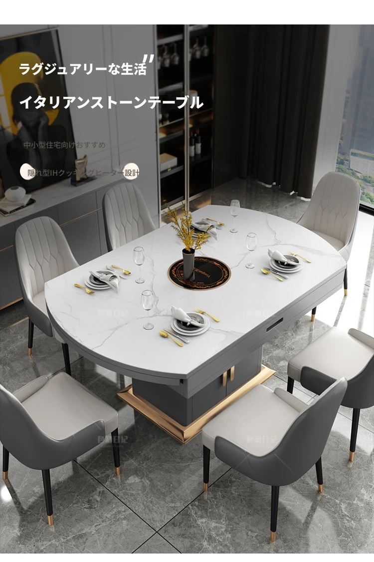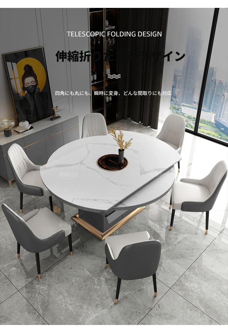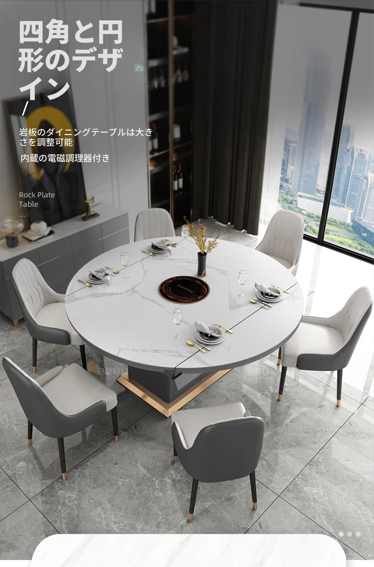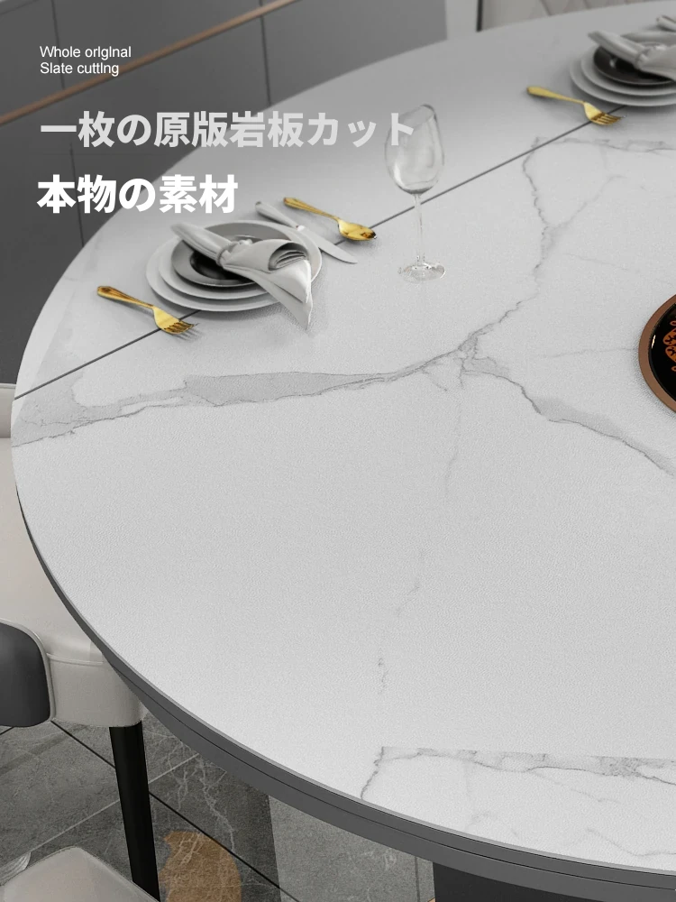 軽やかさと高級感を兼ね備えた岩板製のダイニングテーブル&チェアセット。小型住宅に最適で、電磁調理器付き。伸縮可能な折りたたみ式円形テーブルで、食事のスタイルを自由に変えられます!
