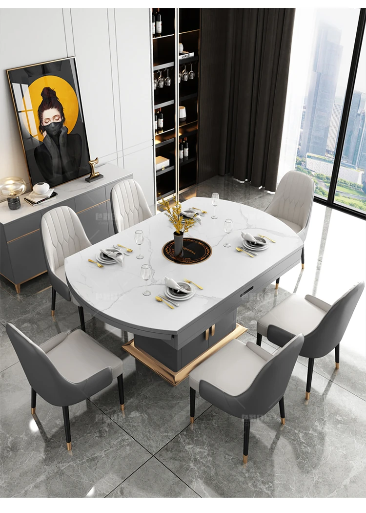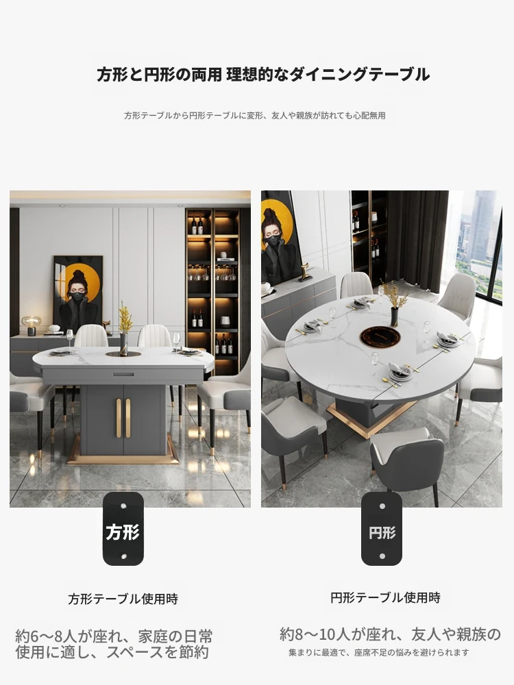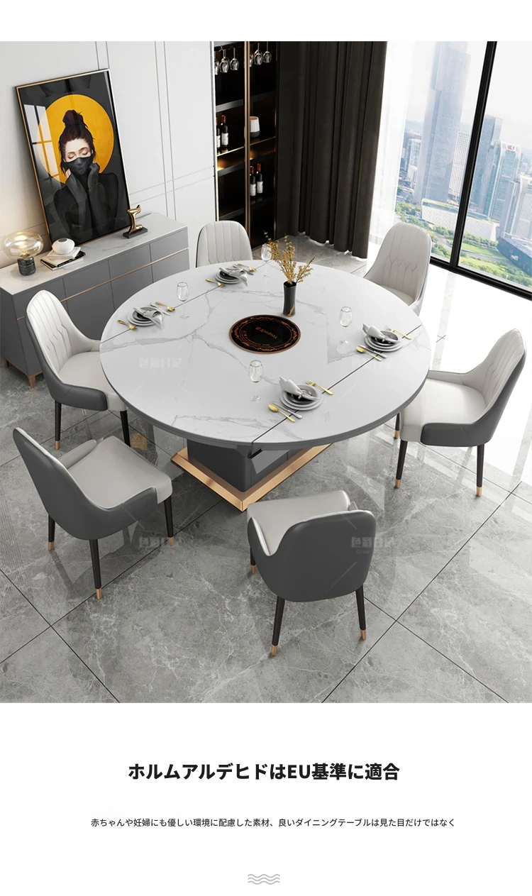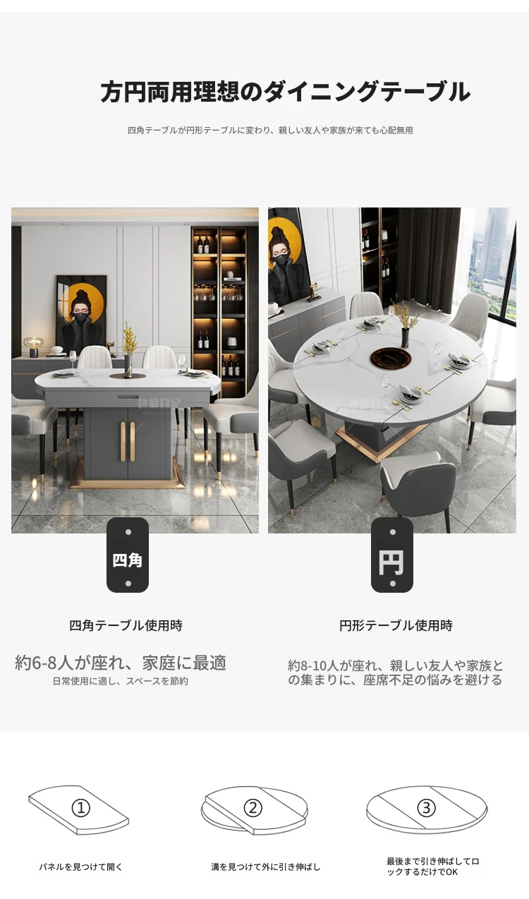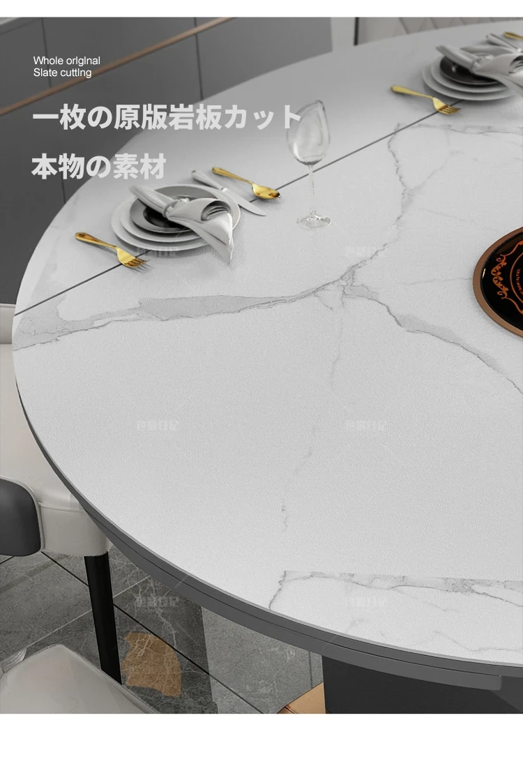 軽やかさと高級感を兼ね備えた岩板製のダイニングテーブル&チェアセット。小型住宅に最適で、電磁調理器付き。伸縮可能な折りたたみ式円形テーブルで、食事のスタイルを自由に変えられます!