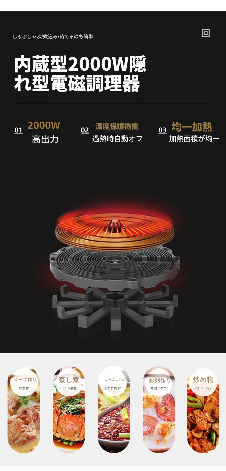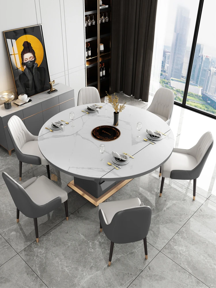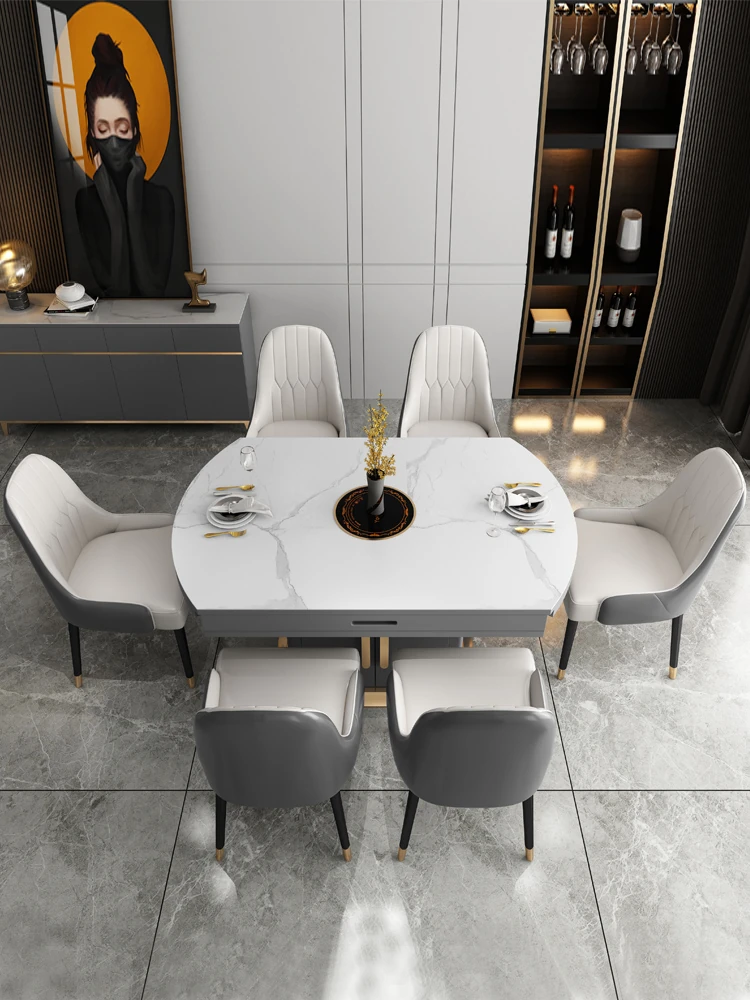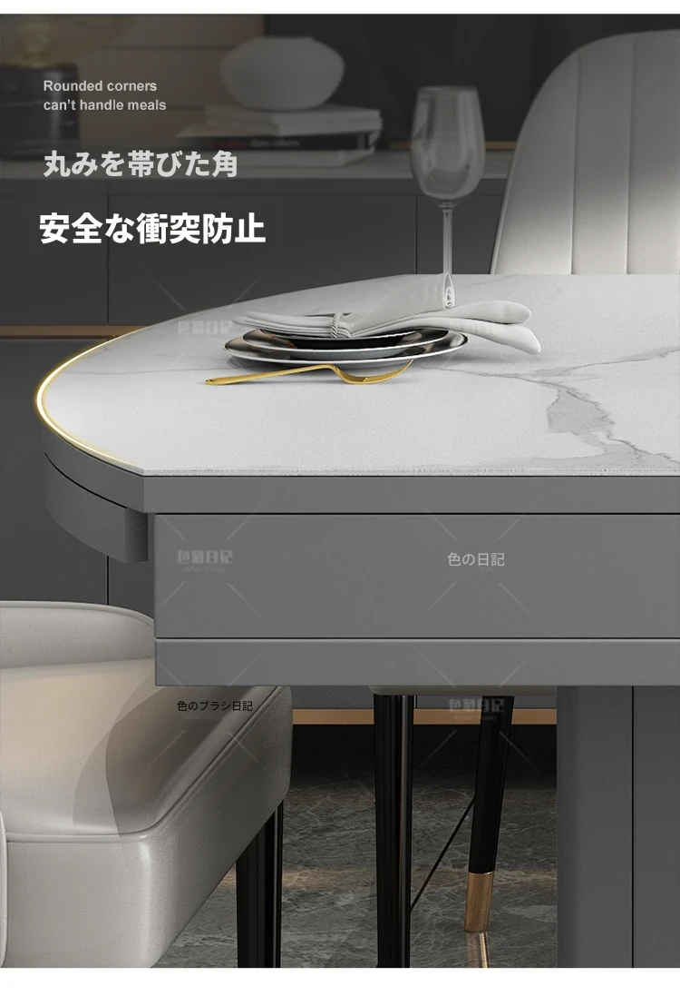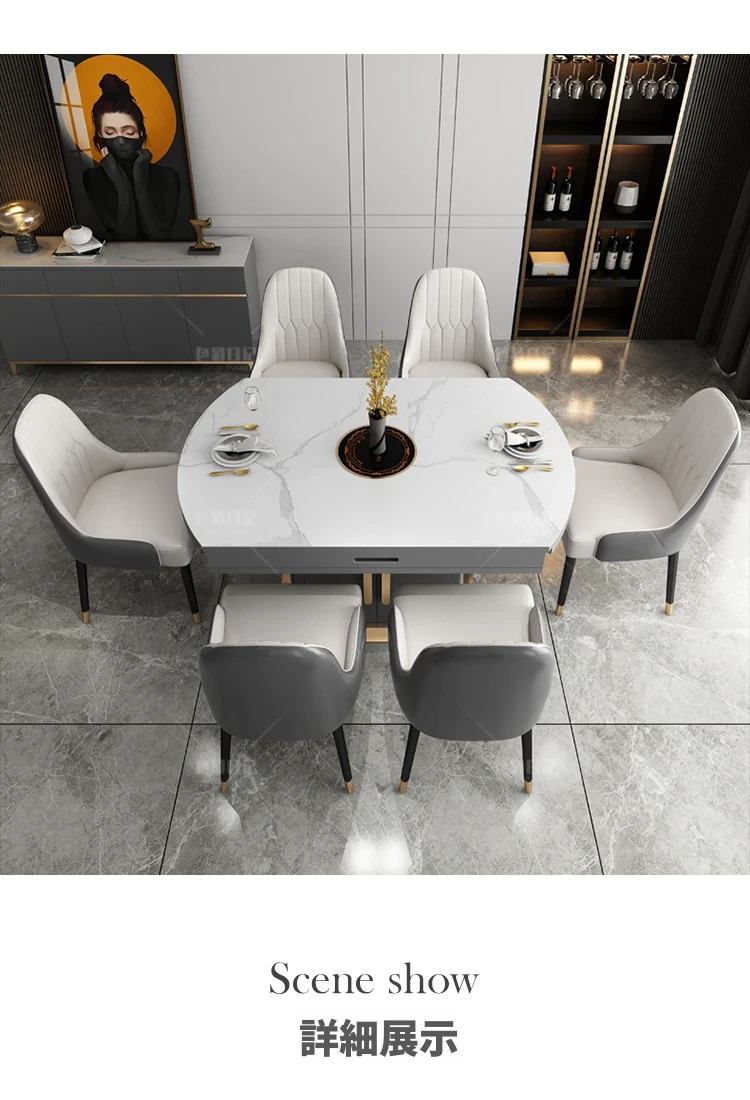 軽やかさと高級感を兼ね備えた岩板製のダイニングテーブル&チェアセット。小型住宅に最適で、電磁調理器付き。伸縮可能な折りたたみ式円形テーブルで、食事のスタイルを自由に変えられます!