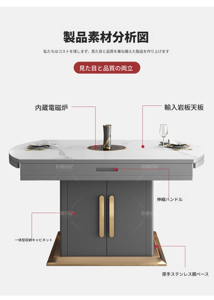 1.5m岩板ダイニングテーブル【電磁調理器付き】