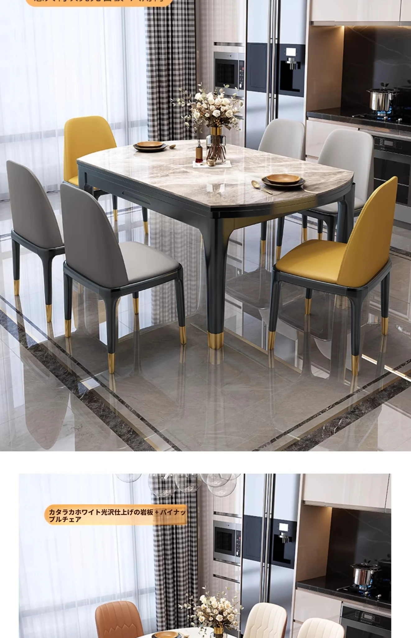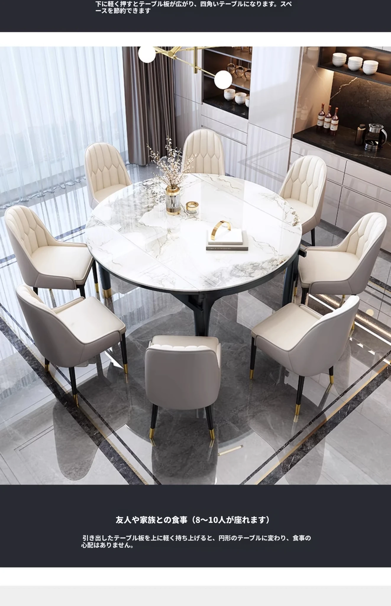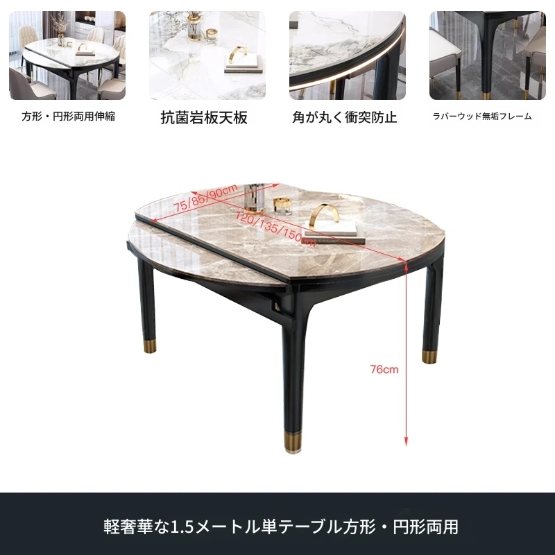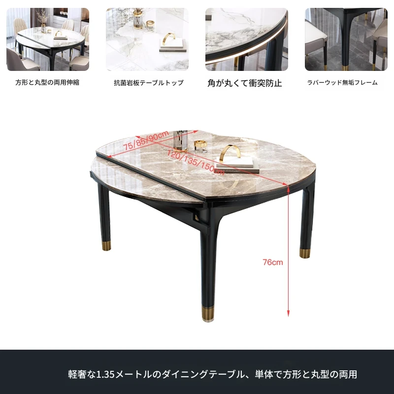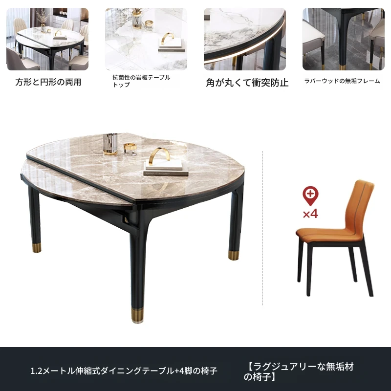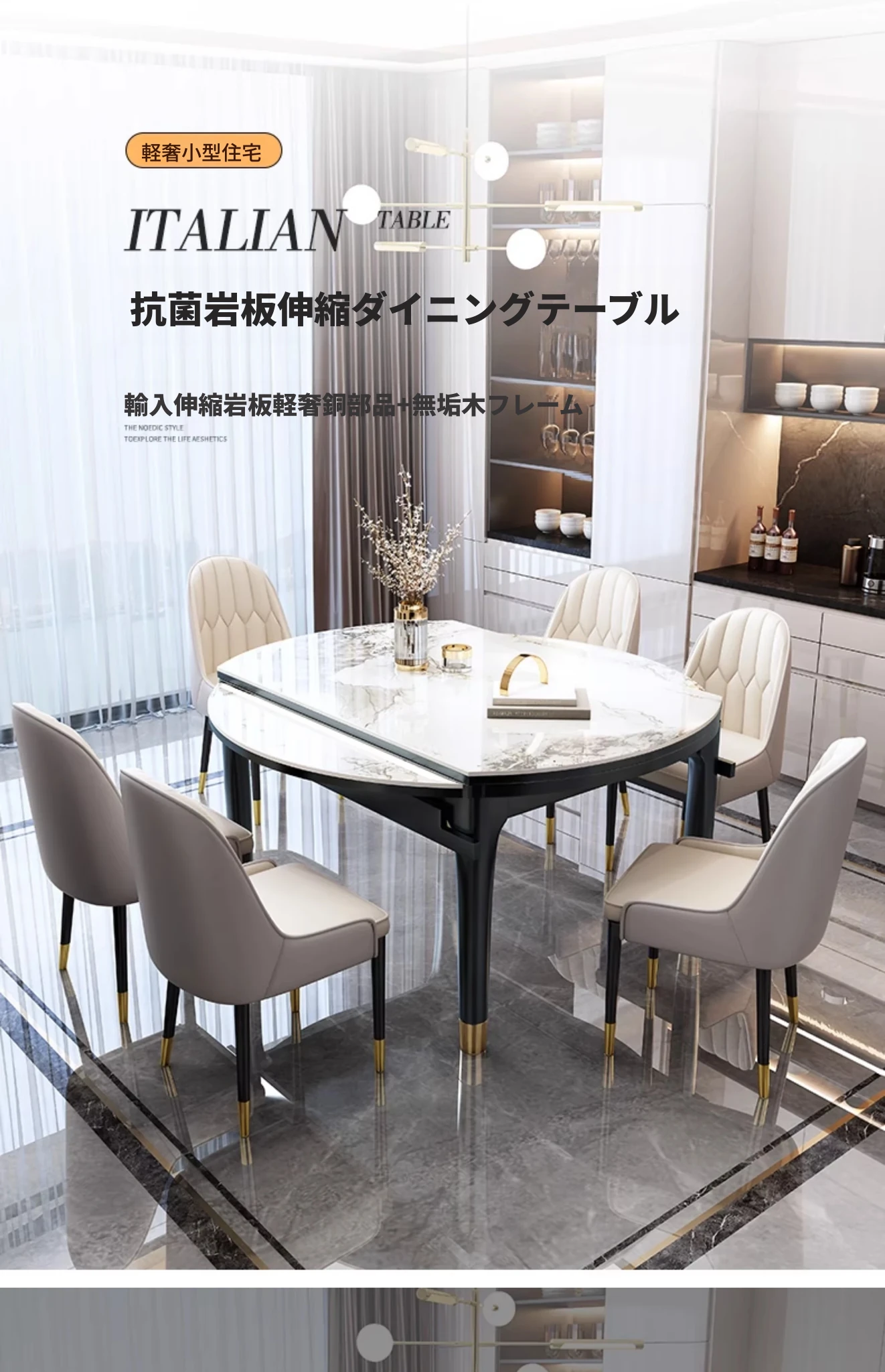 現代的シンプルでラグジュアリーな伸縮式岩板ダイニングテーブル - 丸型と四角型の両方に対応、実木製の折りたたみ式で、小さな空間にもフィットする便利なデザイン!