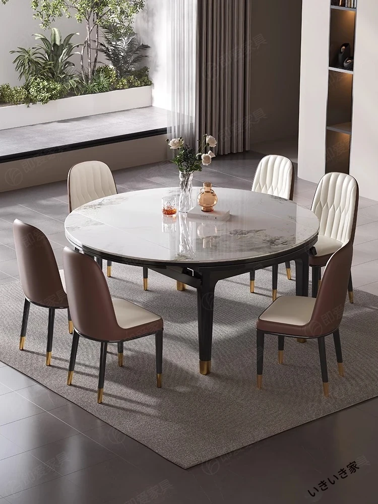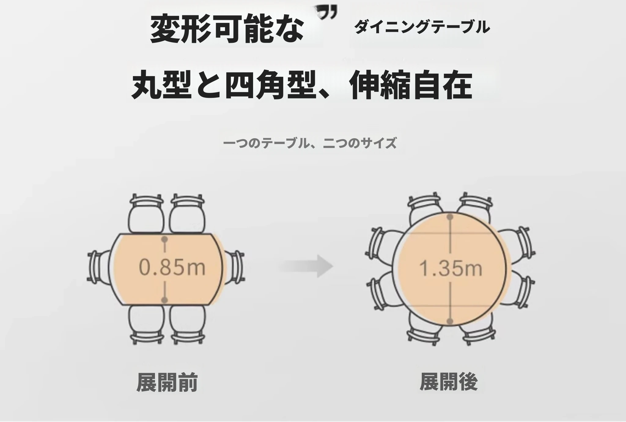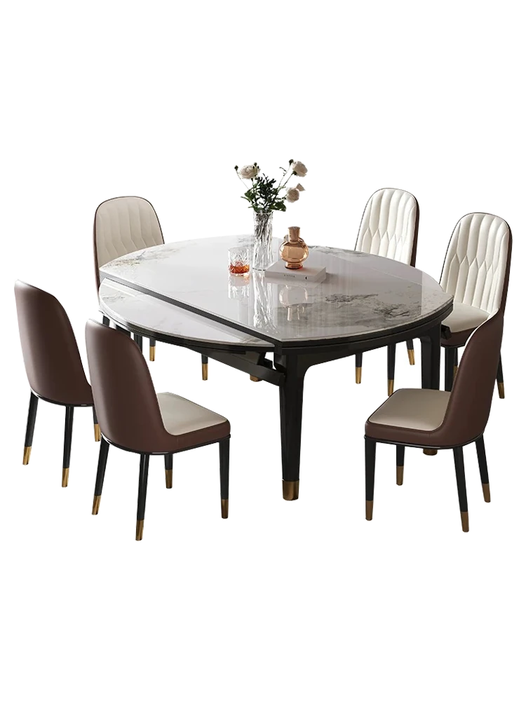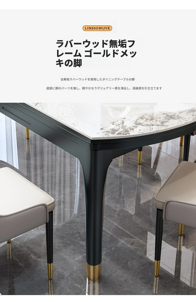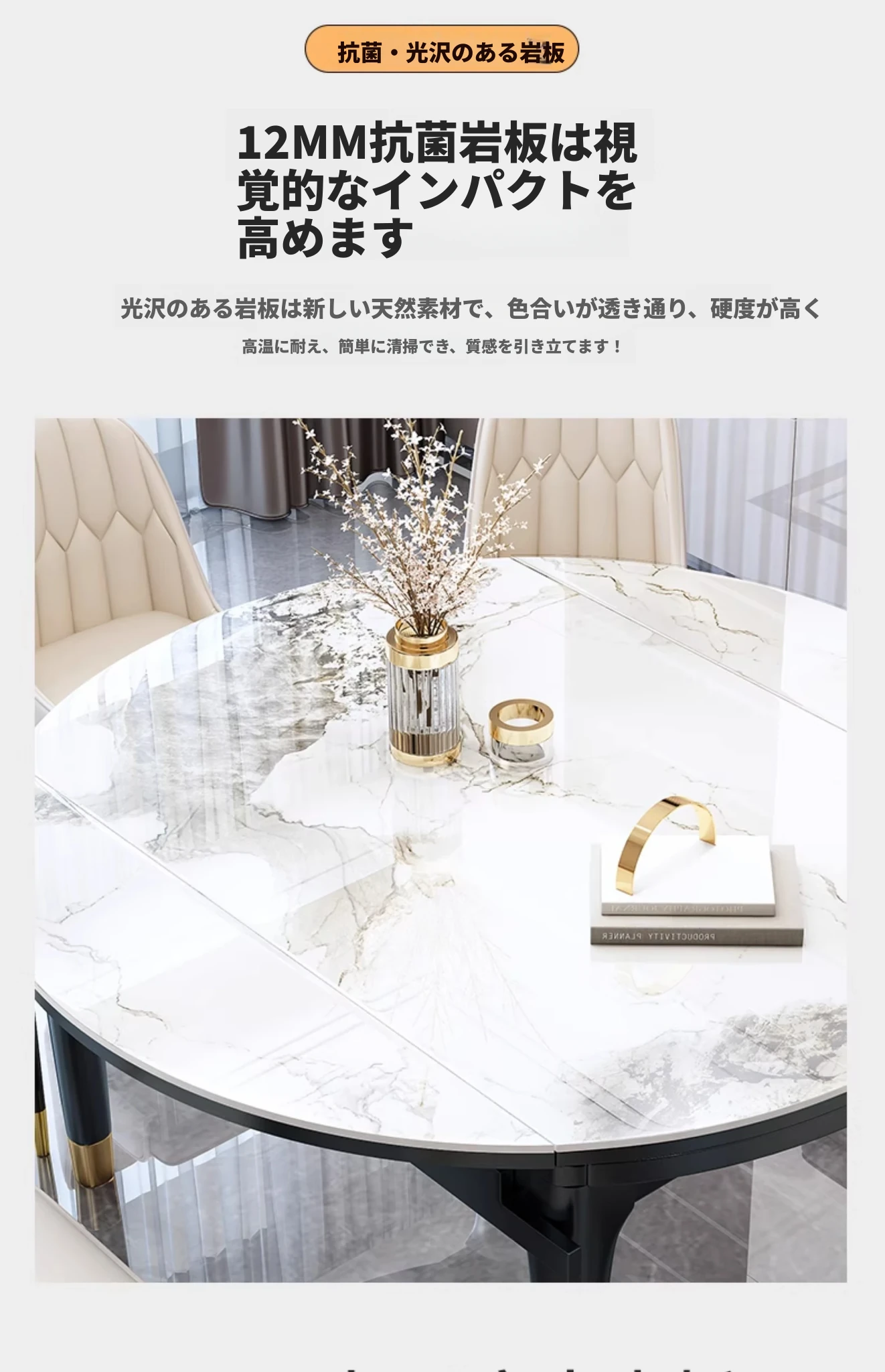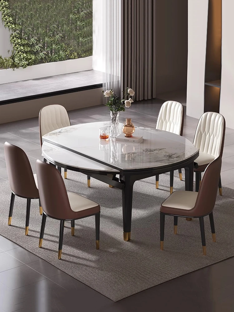 現代的シンプルでラグジュアリーな伸縮式岩板ダイニングテーブル - 丸型と四角型の両方に対応、実木製の折りたたみ式で、小さな空間にもフィットする便利なデザイン!