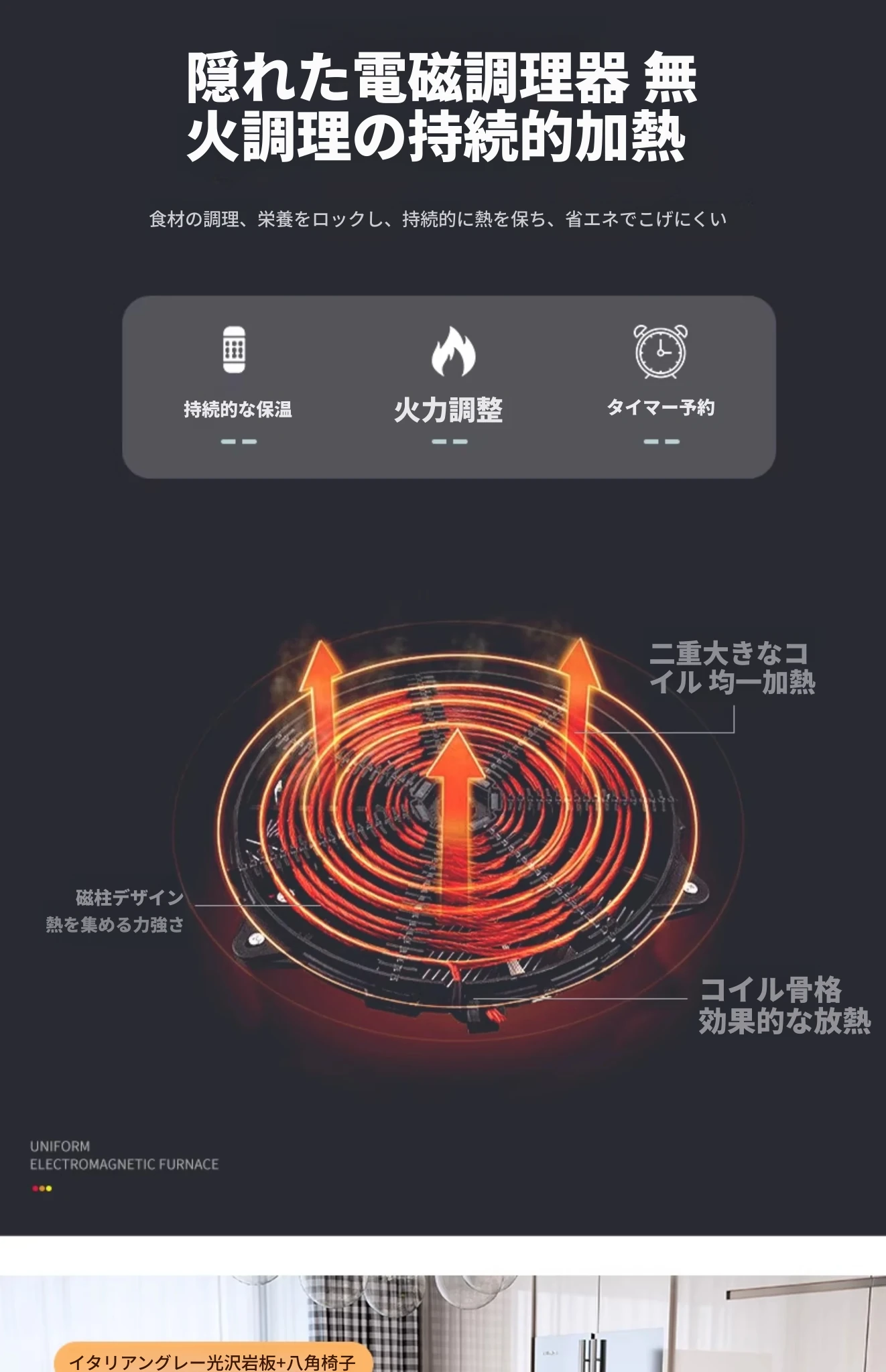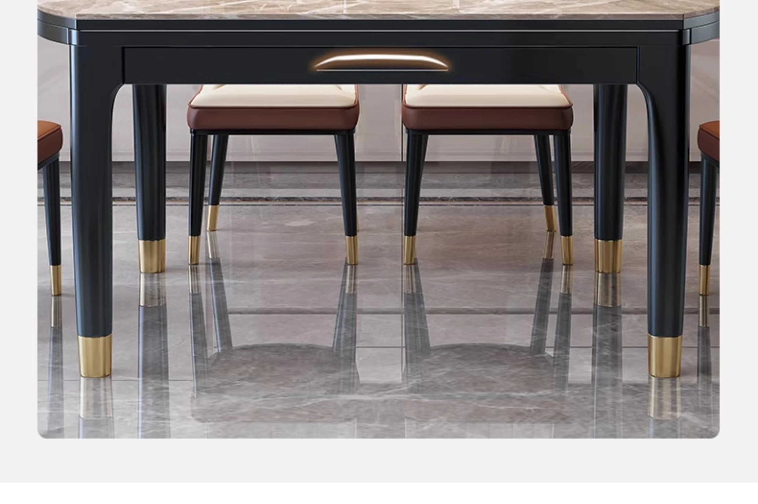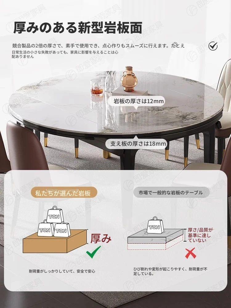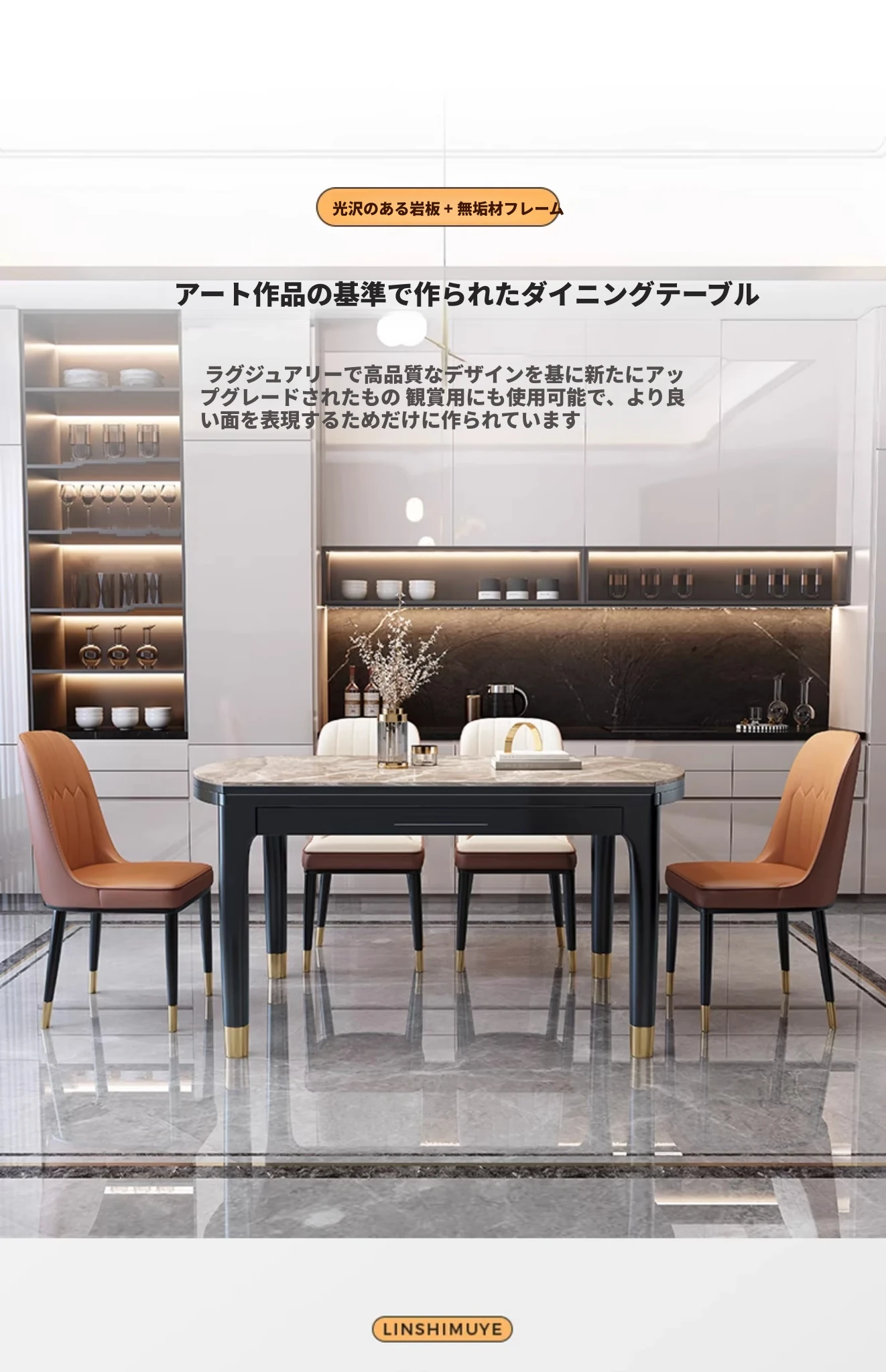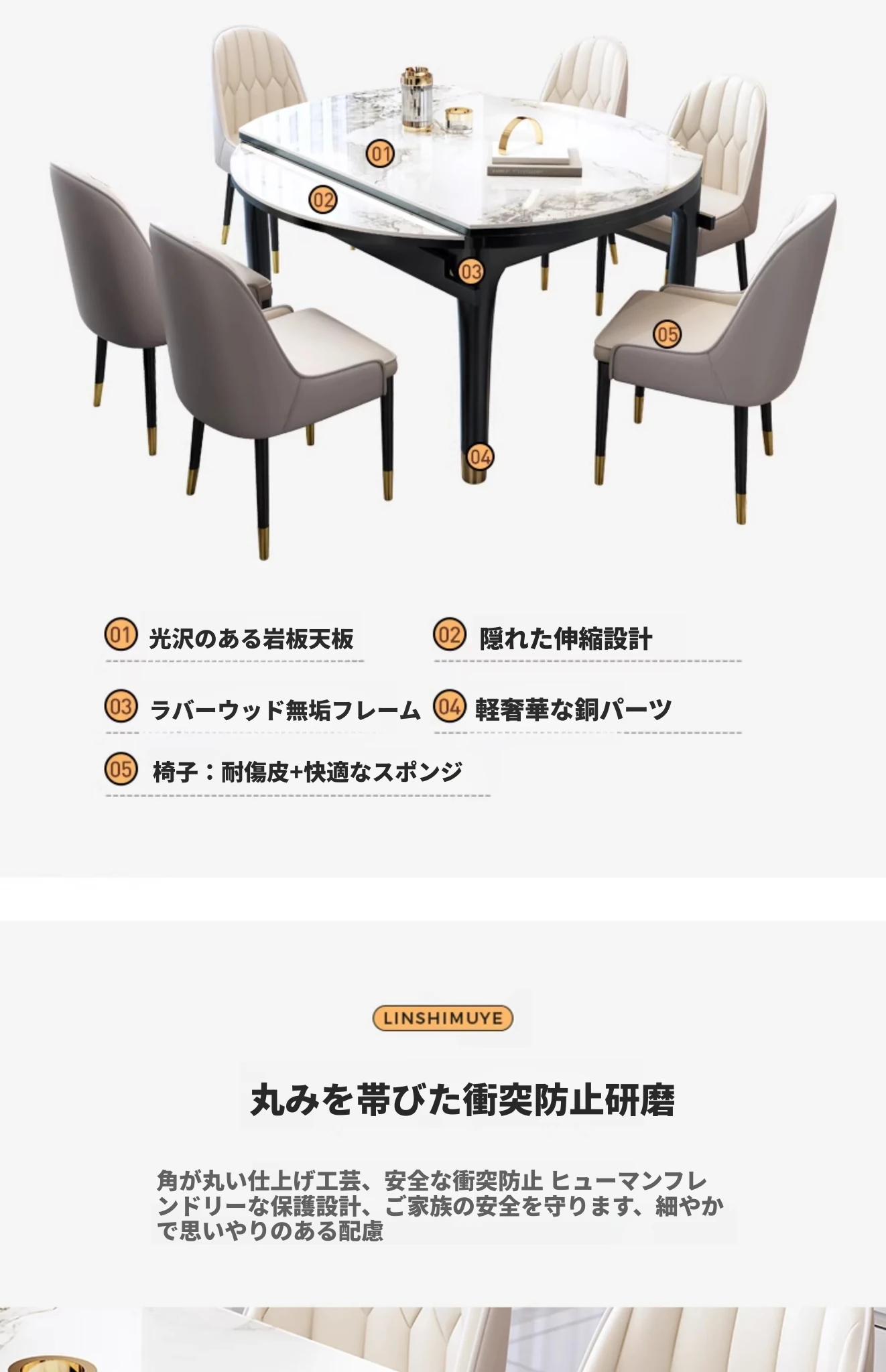 現代的シンプルでラグジュアリーな伸縮式岩板ダイニングテーブル - 丸型と四角型の両方に対応、実木製の折りたたみ式で、小さな空間にもフィットする便利なデザイン!