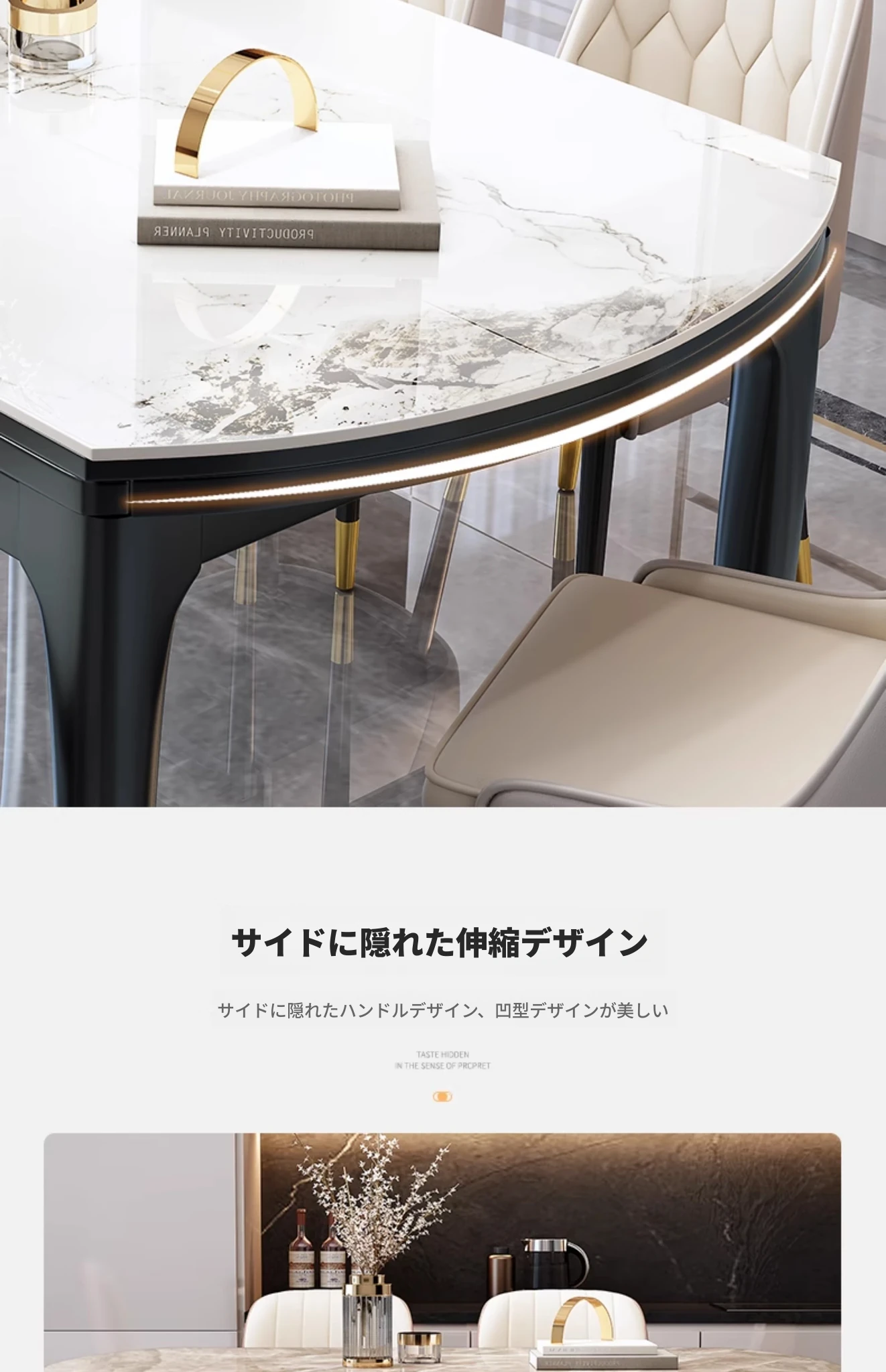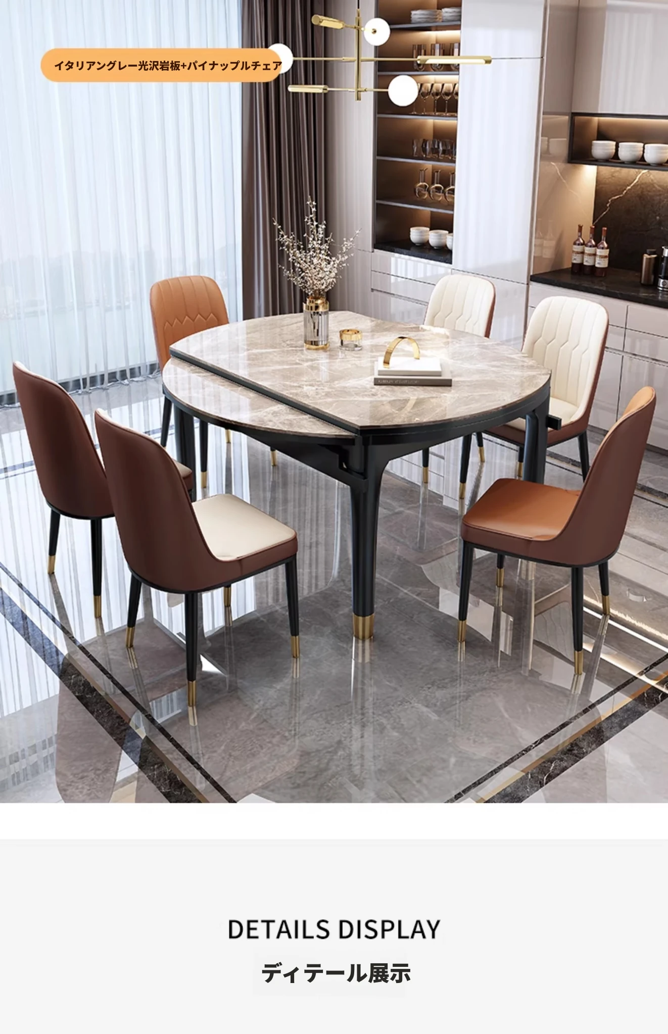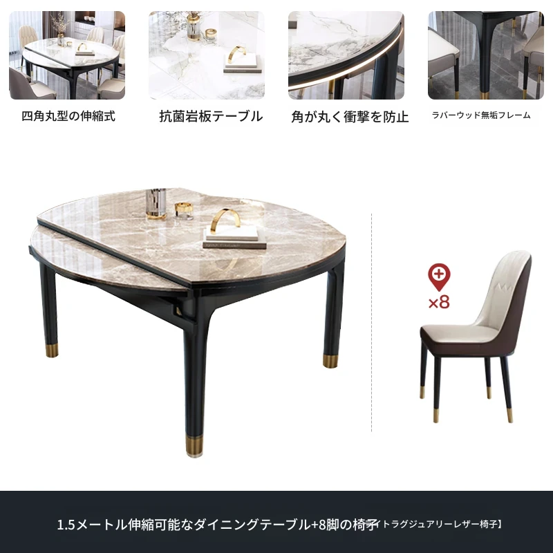 1.5メートル伸縮式ダイニングテーブル+8椅子【ラグジュアリーレザー椅子】