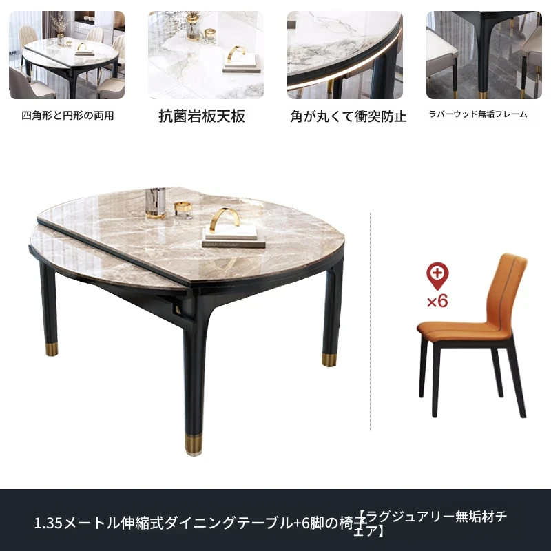 1.35メートル伸縮式ダイニングテーブル+6椅子【ラグジュアリーレザー椅子】