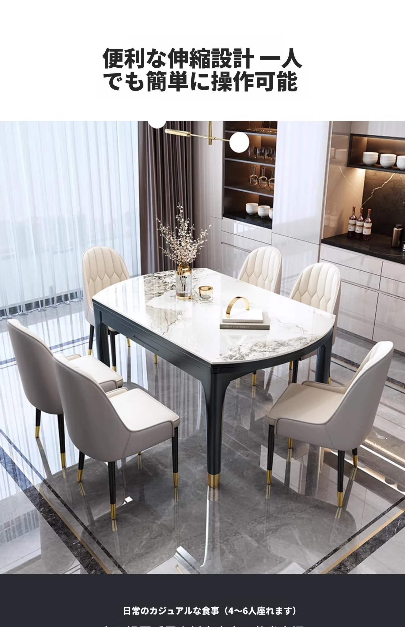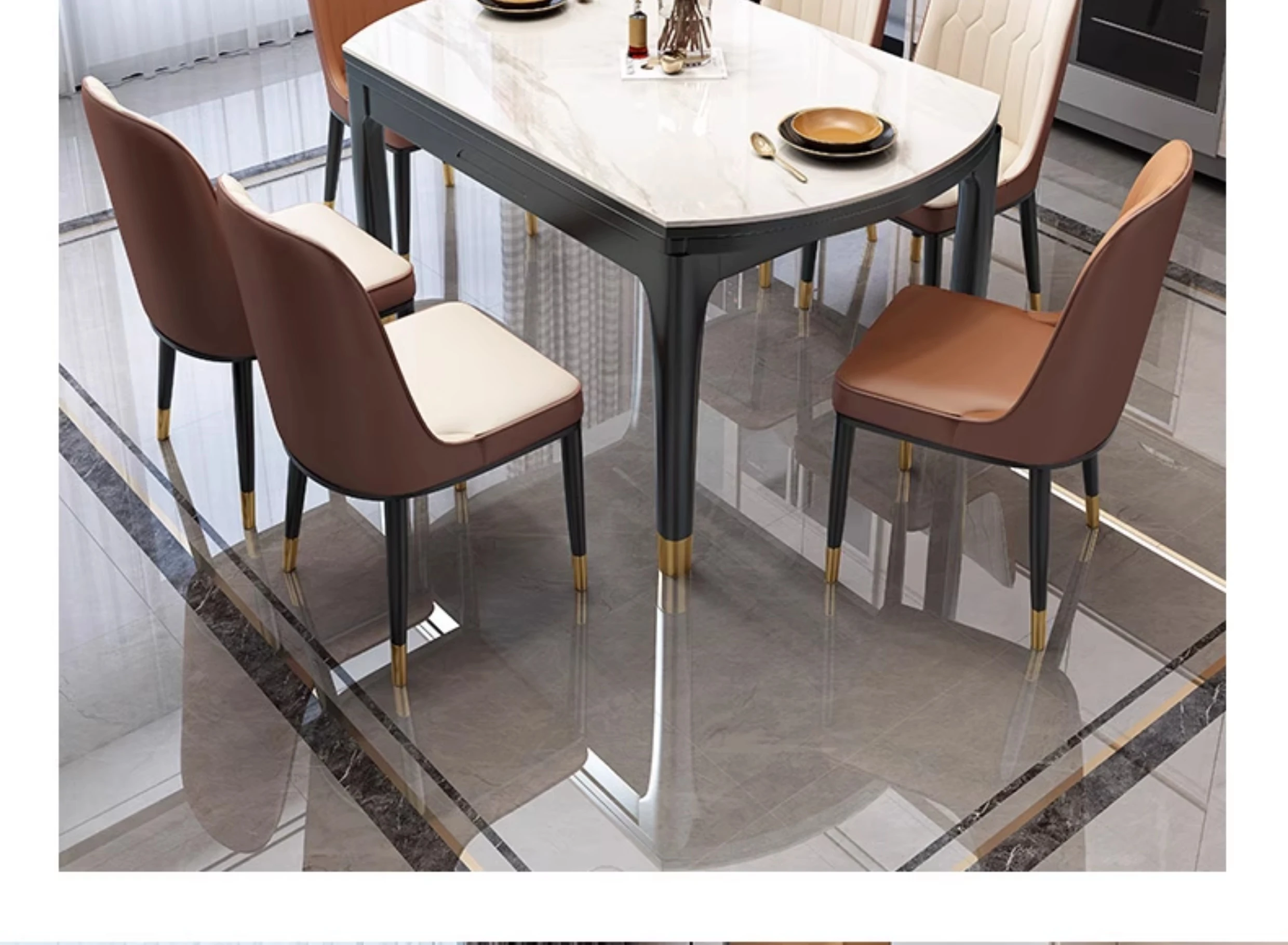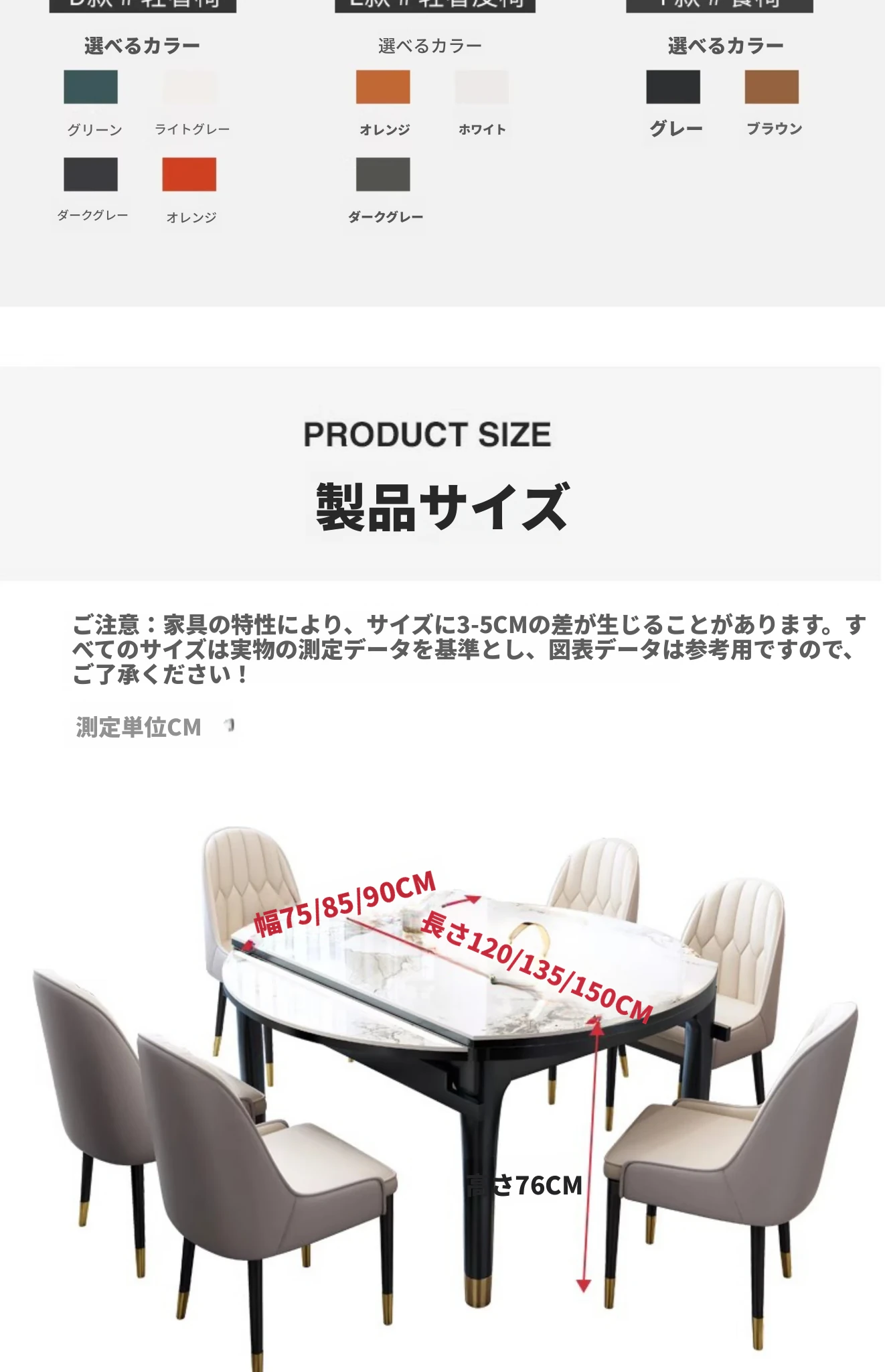 1.5メートル伸縮式ダイニングテーブル+6椅子【ラグジュアリーレザー椅子】