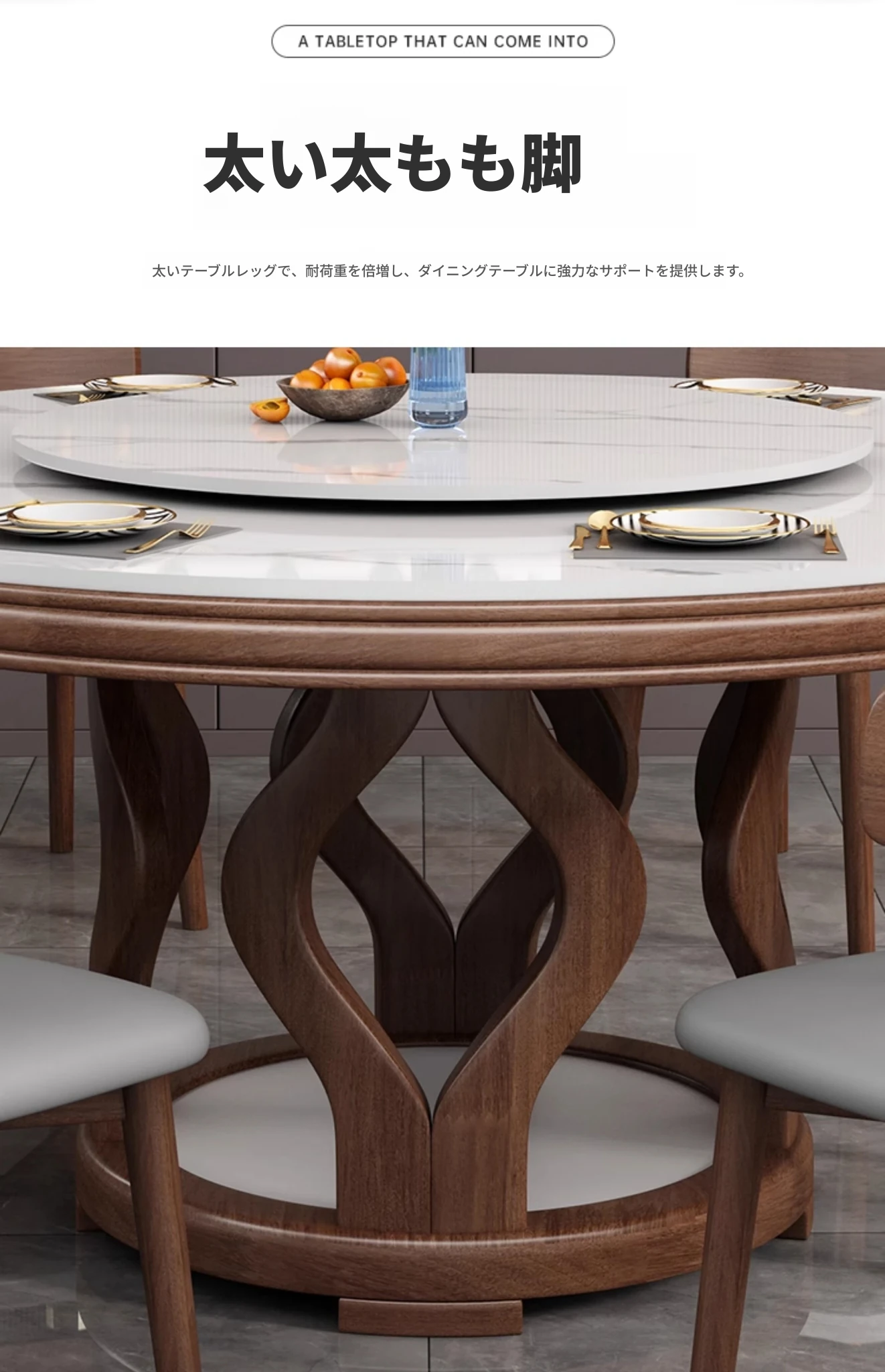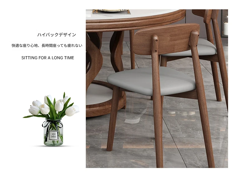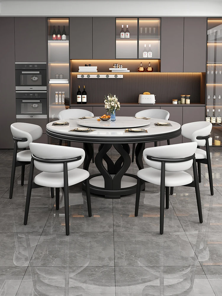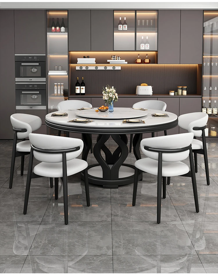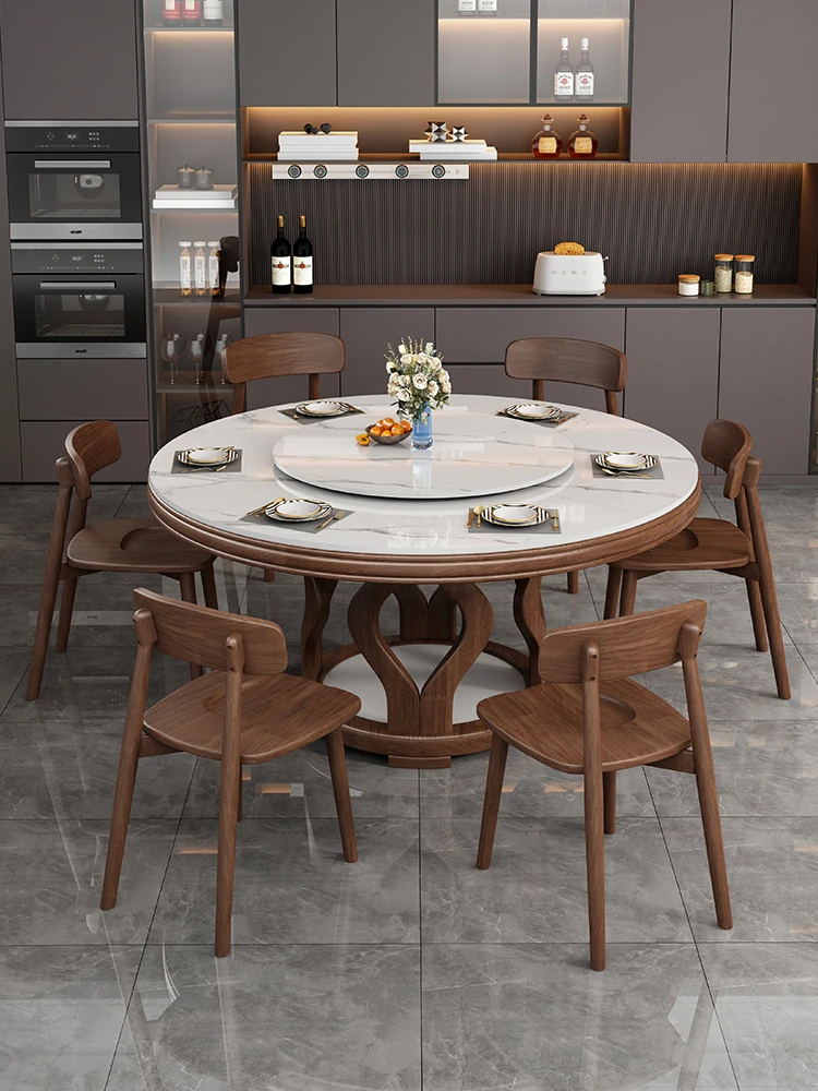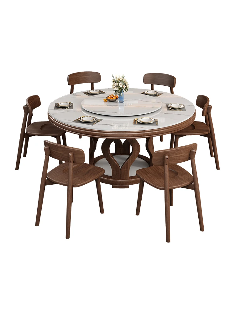 モダンミニマリストの無垢材と大理石のダイニングテーブルセット - 回転式コンロ付きの円形テーブルと椅子の組み合わせ、贅沢な食事体験を演出します!