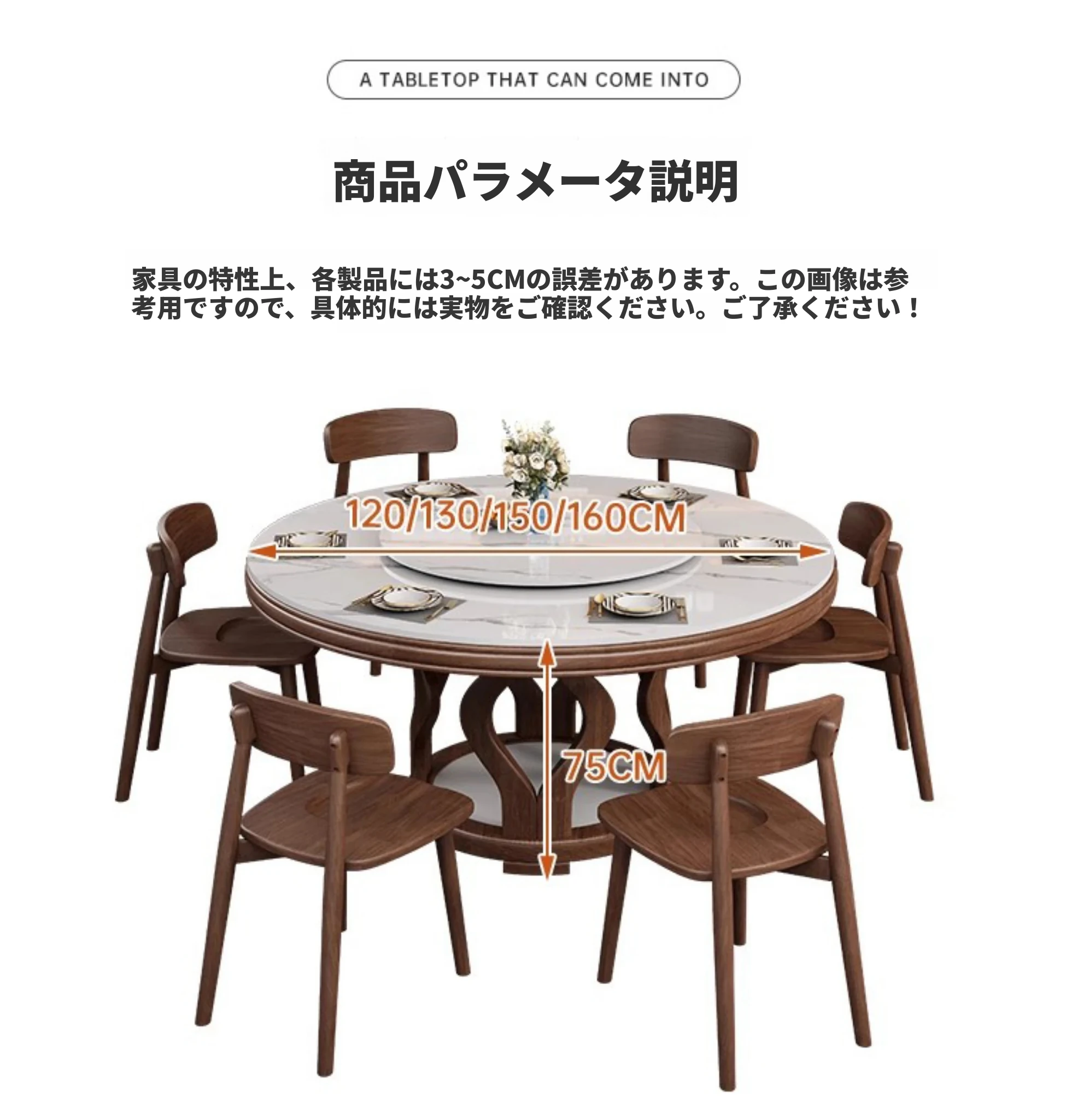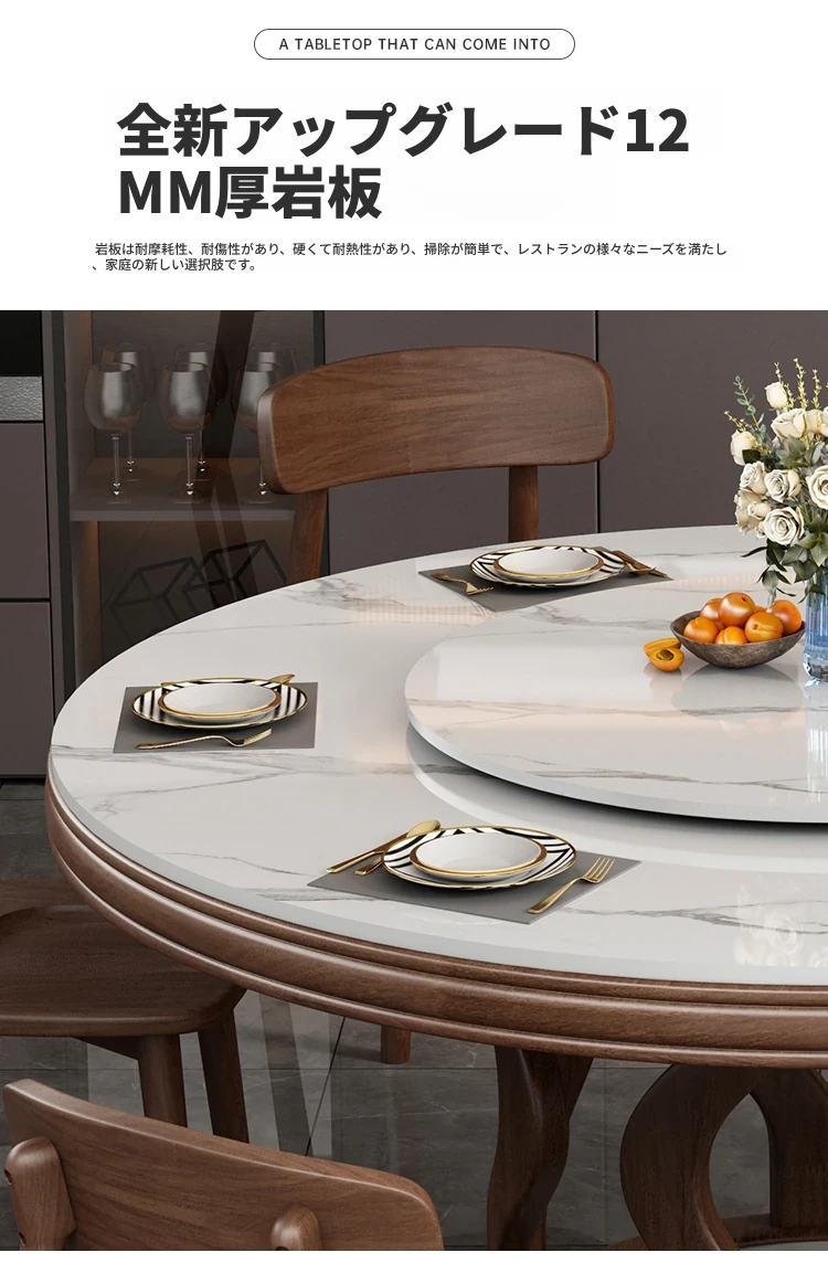 1.2m高級石板円卓+6椅子 電磁炉付き回転台付き