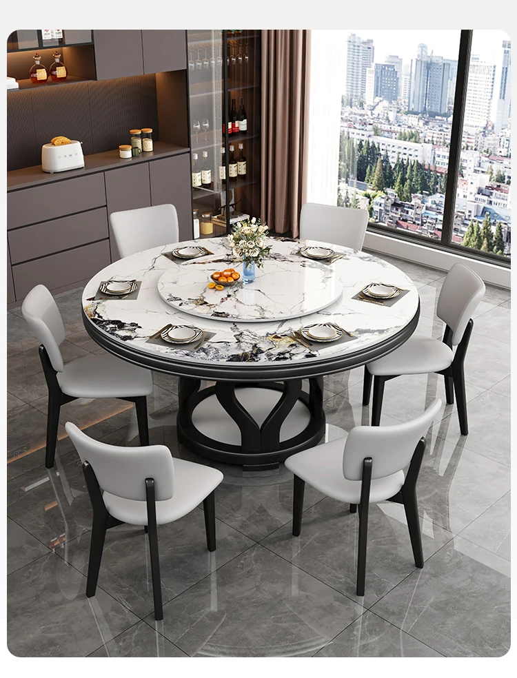 1.5メートル高級石板円卓+6椅子 厚手の石板回転台付き