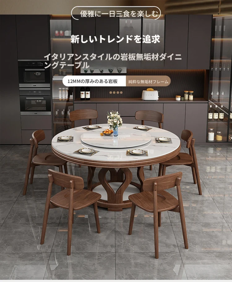 1.2メートル高級石板円卓+6椅子 厚手の石板回転台付き