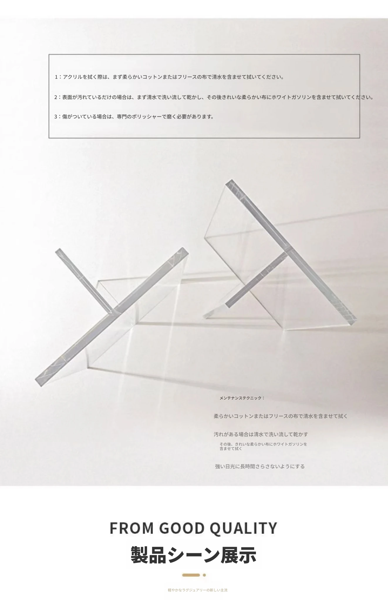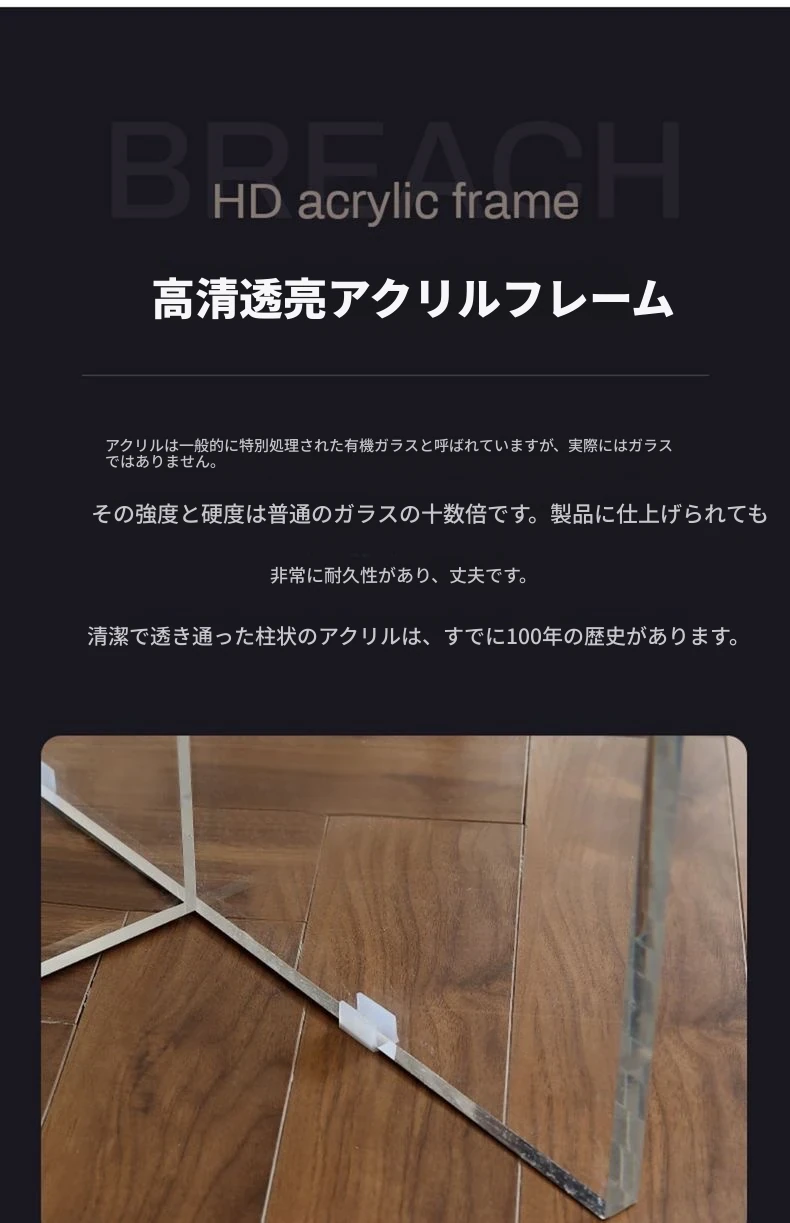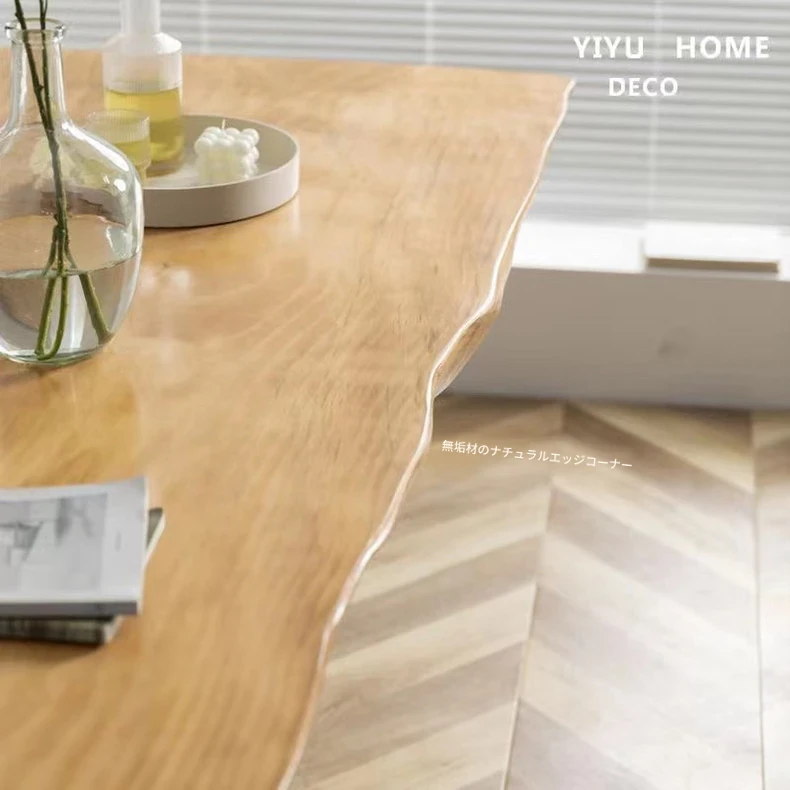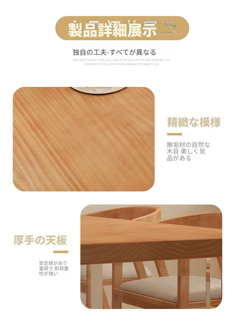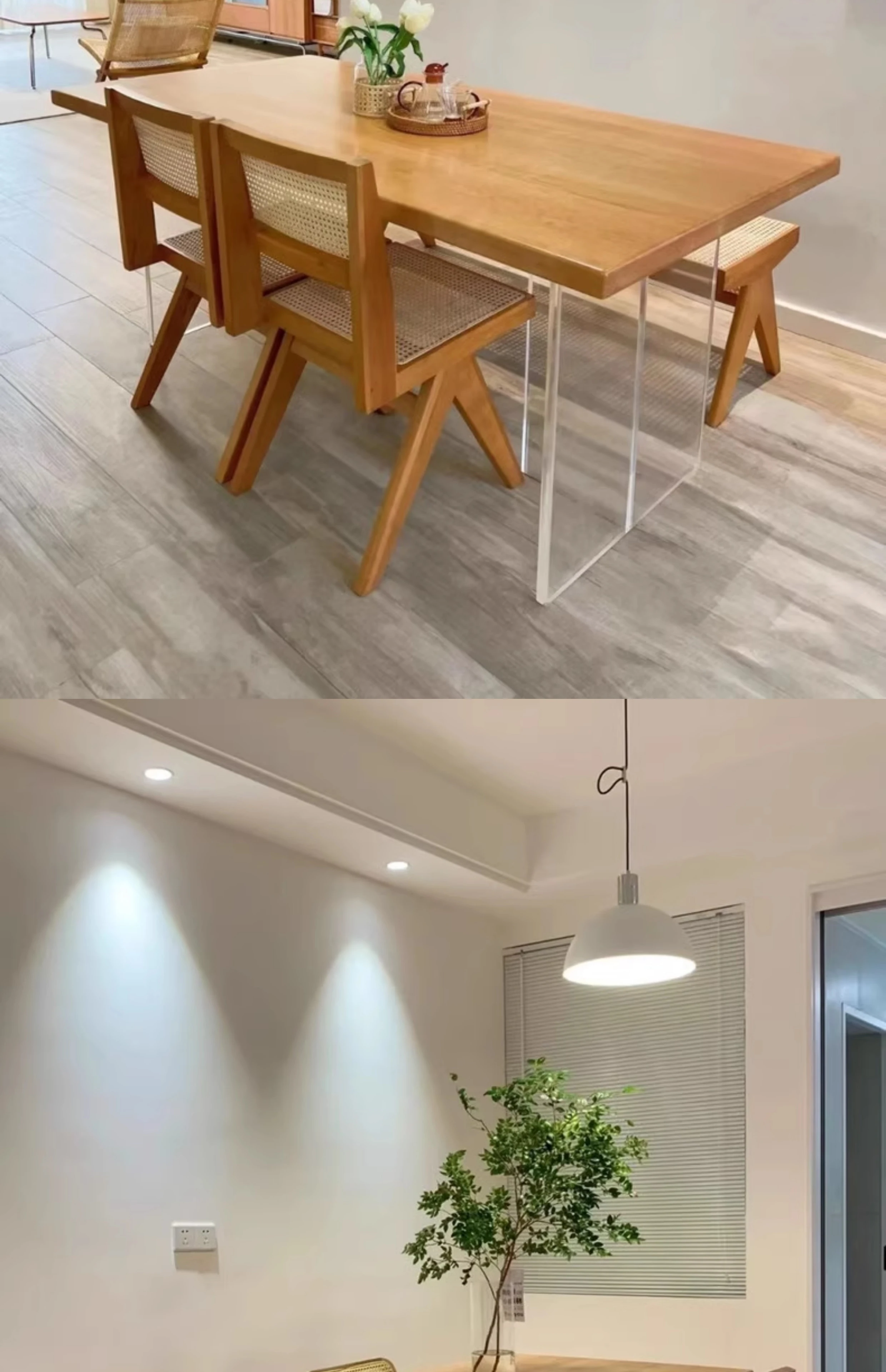 北欧スタイルの無垢材ダイニングテーブル&チェアセット - アクリル浮遊デザイン、モダンでシンプルな小型住宅向け長方形テーブル!おしゃれな空間を演出し、家族や友人との楽しい食事時間を提供します。