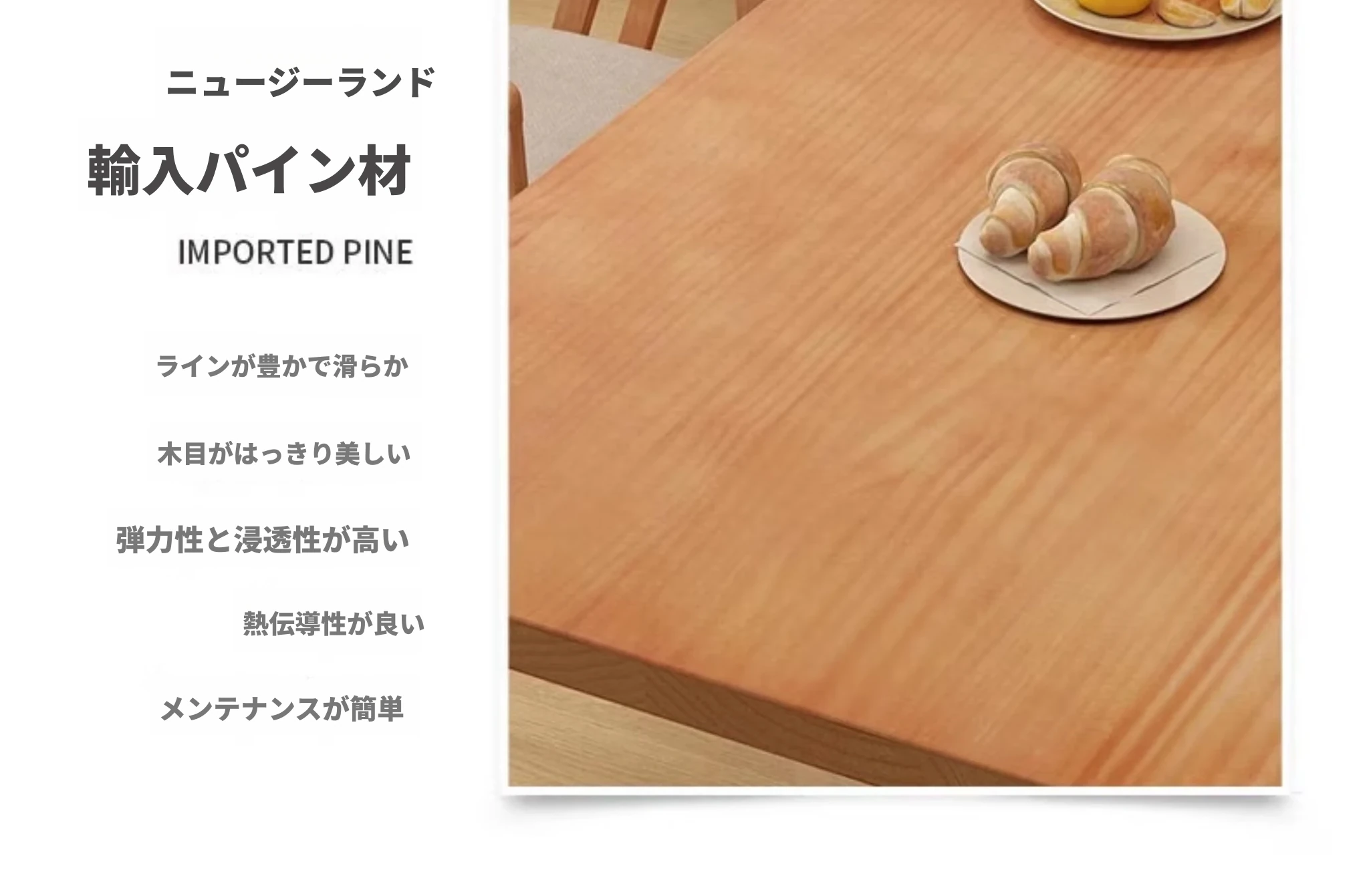 パイン材の直角テーブル天板厚5cmの単体テーブル